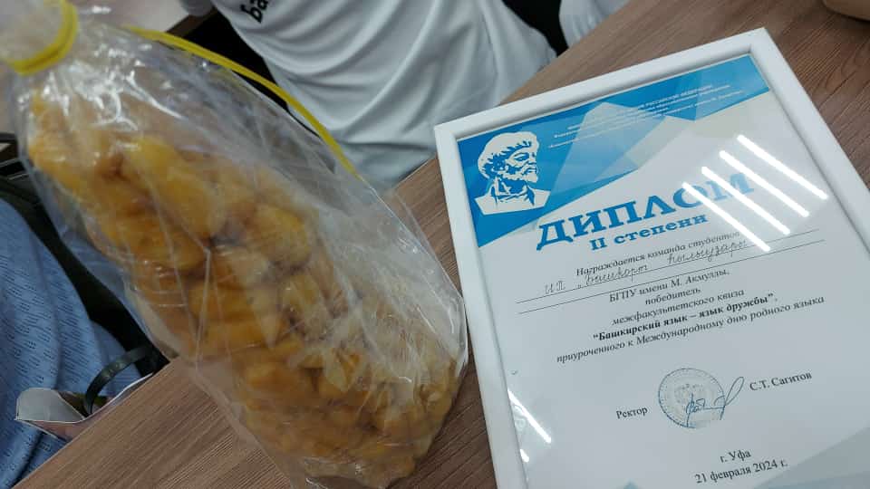 21 февраля 2024 года студенты Института педагогики приняли участие в Межфакультетском квизе «Башкирский язык – язык дружбы», приуроченного ко Дню родного языка. Это мероприятие было направлено на развитие интереса у студентов к изучению и сохранению башкирского языка. Темами интеллектуально-развлекательной игры стали: «Занимательный башкирский язык», «Семь чудес Башкортостана», «В мире творчества М.Карима», «Уфа – столица Башкортостана» а также два раунда были связаны с народными пословицами и знанием башкирских песен. По итогам квиза команда Института педагогики  (Хусаинова Гузель, Хасанова Алсу, Калимуллина Алтынай,  Файзуллина Айгиза,  Закиева Ильзина) была награждена дипломом II степени. Поздравляем участников квиза и преподавателя башкирского языка Сулиакаеву Раушанию Абдулхаевну! Желаем дальнейших успехов!