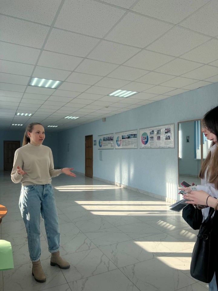 Алёна Игоревна рассказала про направления подготовки, особенностях образования кафедры, вступительных испытаниях, сроках подачи документов. Затем Лия провела  зажигательный флешмоб для ребят.