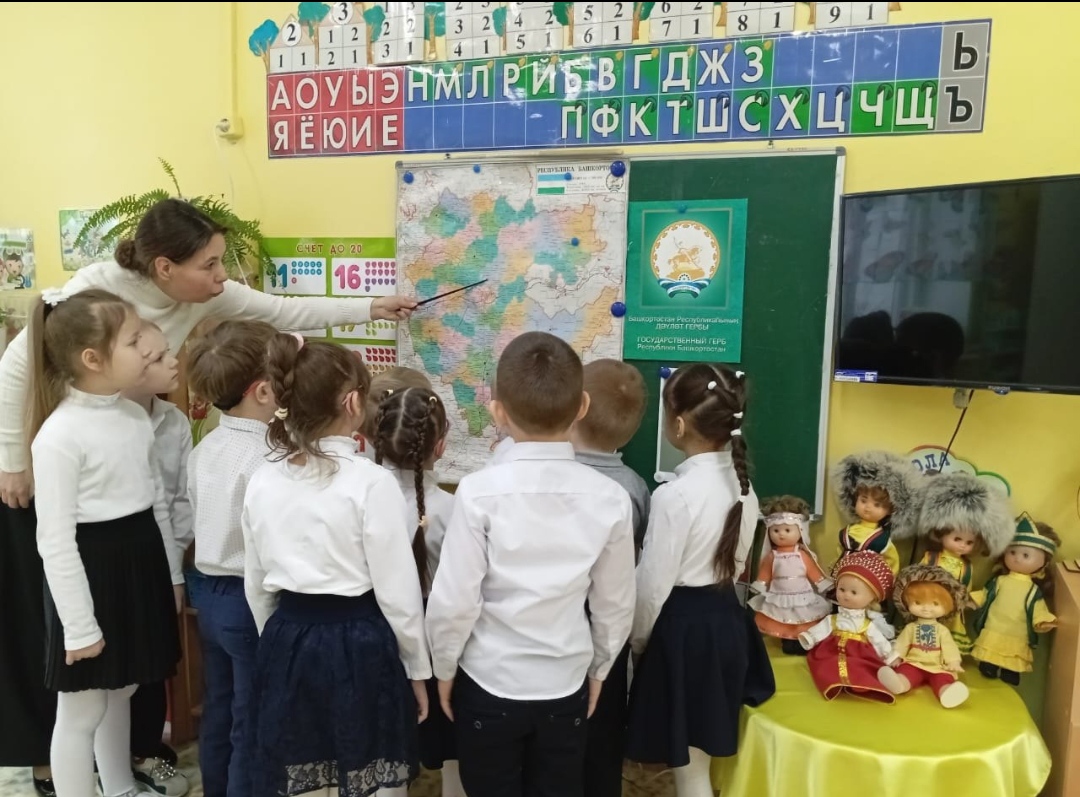 В ходе образовательной деятельности ребята рассмотрели интерактивную карту России и нашли наш регион - Республику Башкортостан, познакомились с достижениями нашей Республики в различных сферах.