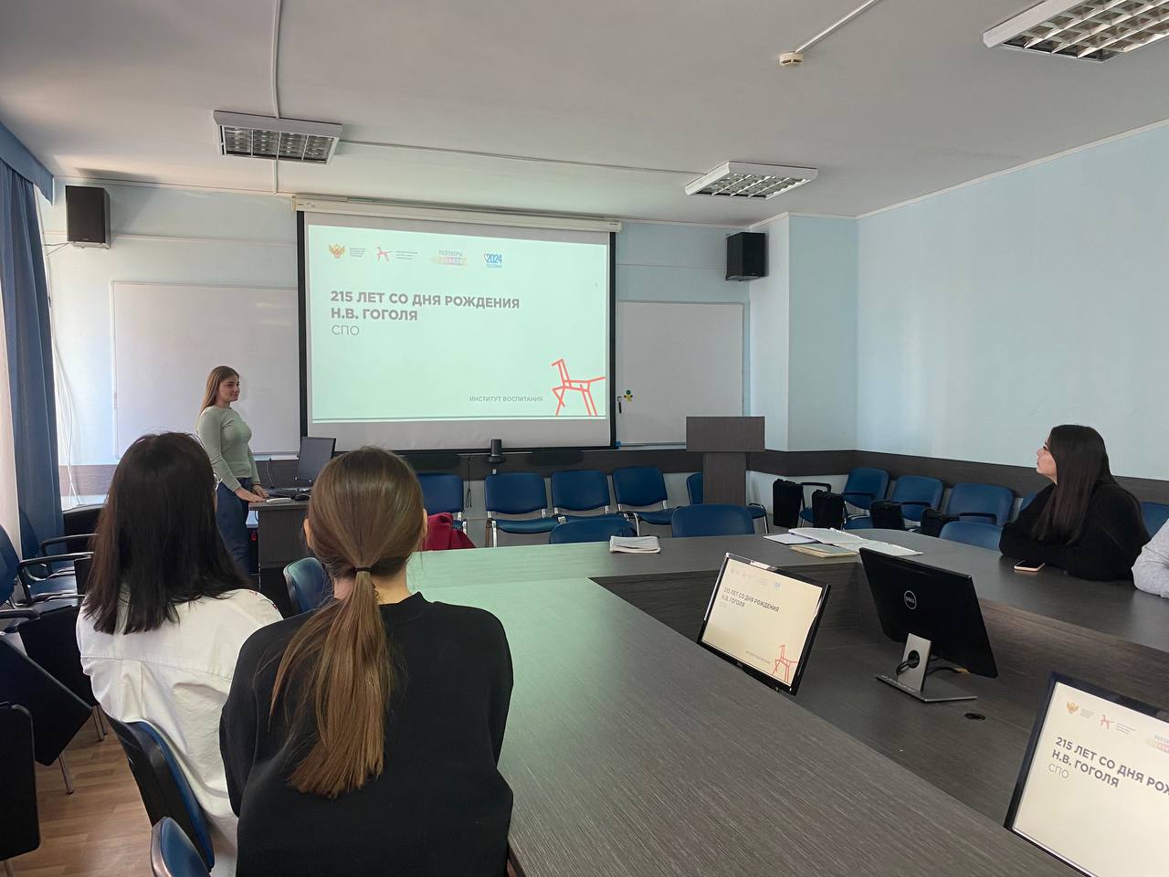 15 апреля 2024 года в рамках реализации проекта «РАЗГОВОРЫ О ВАЖНОМ» со студентами групп СОЛОГ-11-23 и СОДД-11-23 состоялся кураторский час на тему «215-летие со дня рождения Н.В. Гоголя», который провел куратор Сайтханов А.Ф. и старосты студенческих групп Титова Арина и Кутьина Дарья. Студенты посмотрели видеоролик «Гоголь, его жизнь и творчество», обсудили вопросы патриотизма, гражданственности, нравственности, гуманизма, которые проходят через все творчество великого писателя.