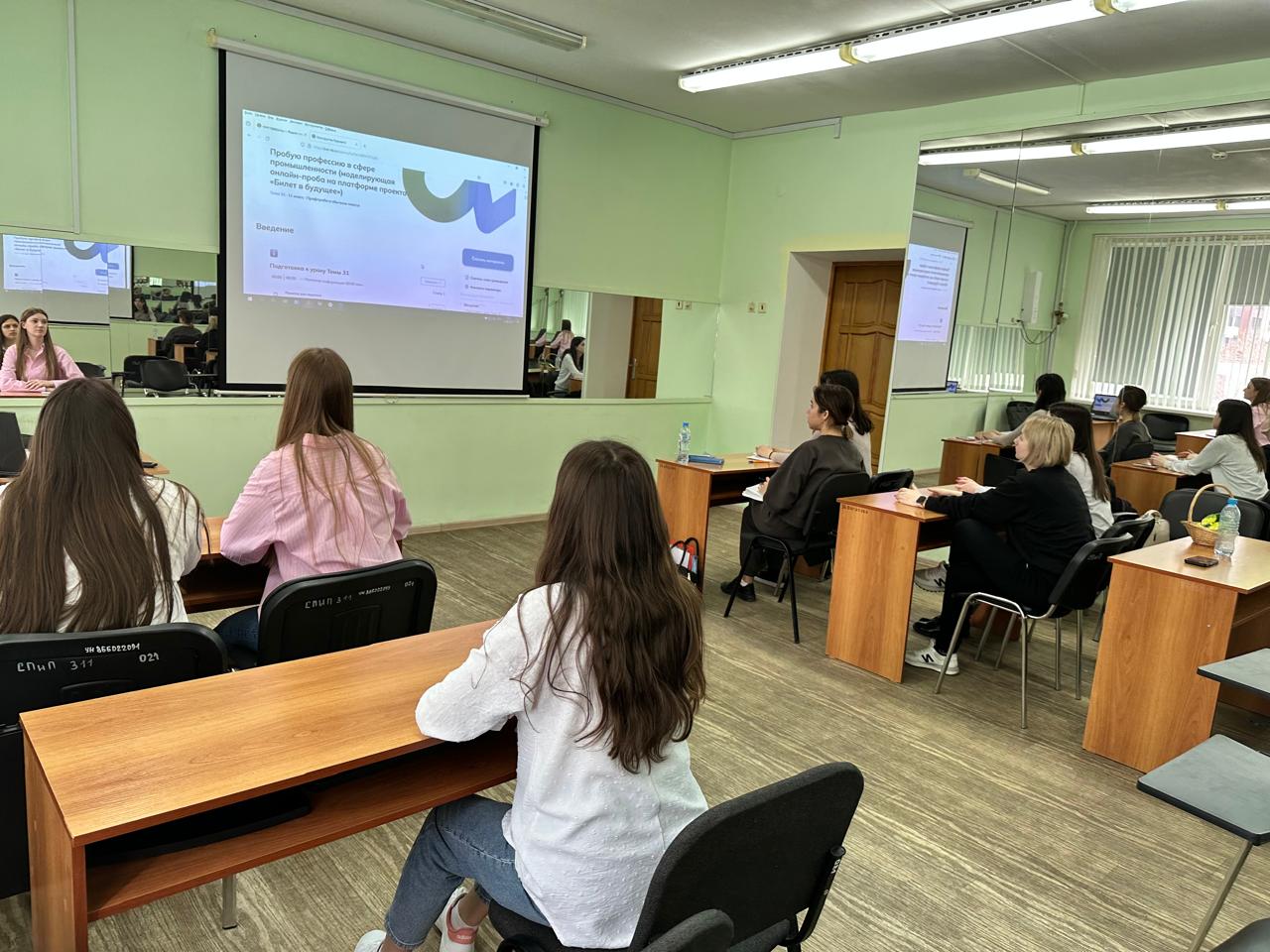 18 апреля 2024 года в рамках Всероссийского просветительского проекта «Россия - мои горизонты»» со студентами групп СОЛОГ-11-23, СОДД-11-23, СОЛОГ-41-23, СОДД-41-20 ст. преподаватели кафедры СПиП Дильмухаметова Р.С., Зиганурова Р.В., доценты кафедры СПиП Сайтханов А.Ф., Сайфутдиярова Е.Ф. провели профориентационное занятие на тему «Пробую профессию в сфере промышленности» (моделирующая онлайн-проба на платформе проекта «Билет в будущее»)». Студенты попробовали свои силы в сфере промышленности, попробовали решить задачи и ситуации, с которыми сталкиваются специалисты во время работы.