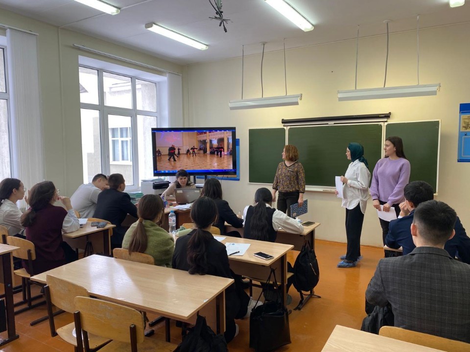 18 апреля 2024 года студентки кафедры музыкального и хореографического образования группы ОЗПМО-31-21 Гумерова (Муллабаева) Гюзель Юлаевна , Гильмутдинова Эльвира Радисовна и студентка группы ОЗПМОС-31-21 Петрова Эльвира Максутовна провели профориентационное мероприятие в гимназии №20 г. Уфа.