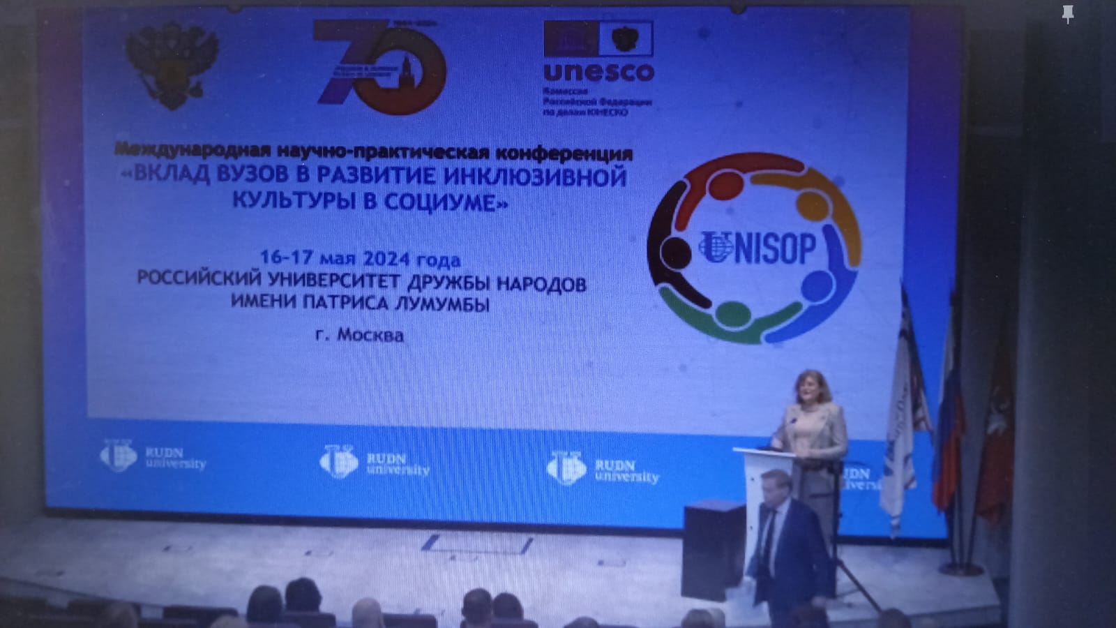 16 мая Российский университет дружбы народов имени Патриса Лумумбы при поддержке Министерства науки и высшего образования Российской Федерации, под эгидой Комиссии Российской Федерации по делам ЮНЕСКО провел международную научно-практическую конференцию «Вклад вузов в развитие инклюзивной культуры в социуме», в которой приняла участие зав. кафедрой специальной педагогики и психологии Цилюгина И.Б.
