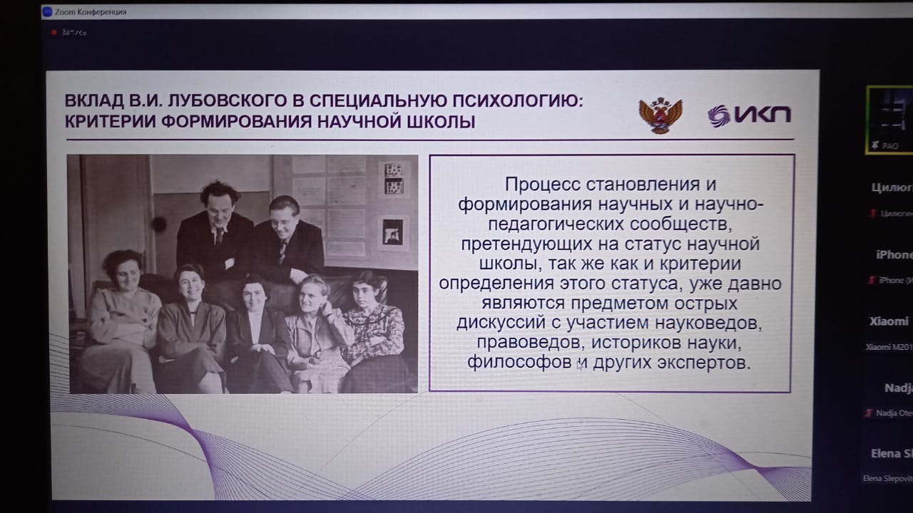 Основной темой мероприятия стало выделение критериев, позволяющих определить статус научной школы, на примере анализа биографий и творчества выдающихся российских психологов и дефектологов. На заседании круглого стола дефектологи вспомнили вехи развития дефектологии как науки с ориентацией на исследования таких выдающихся ученых как В.И. Лубовский и Р.Е. Левина, а также проследили результаты современных научных исследований, основы которых составляют идеи названных ученых.