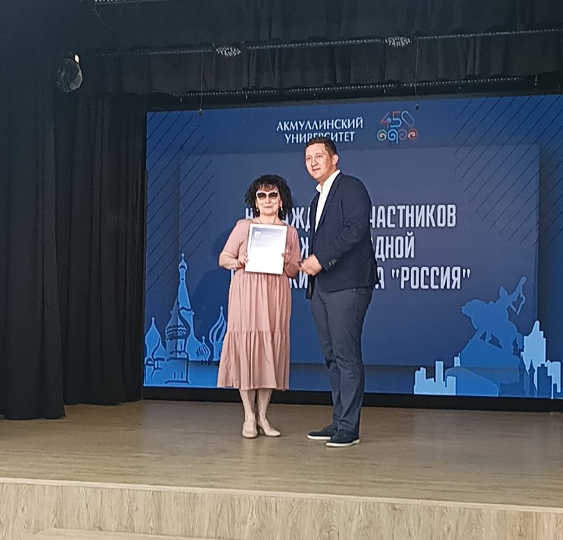 12 июня состоялась церемония награждения участников Международной выставки-форума «Россия» на ВДНХ г. Москва. Среди них были доцент кафедры Яппарова Дамира Мингалиевна и старший преподаватель Камалиева Гульнара Раильевна.