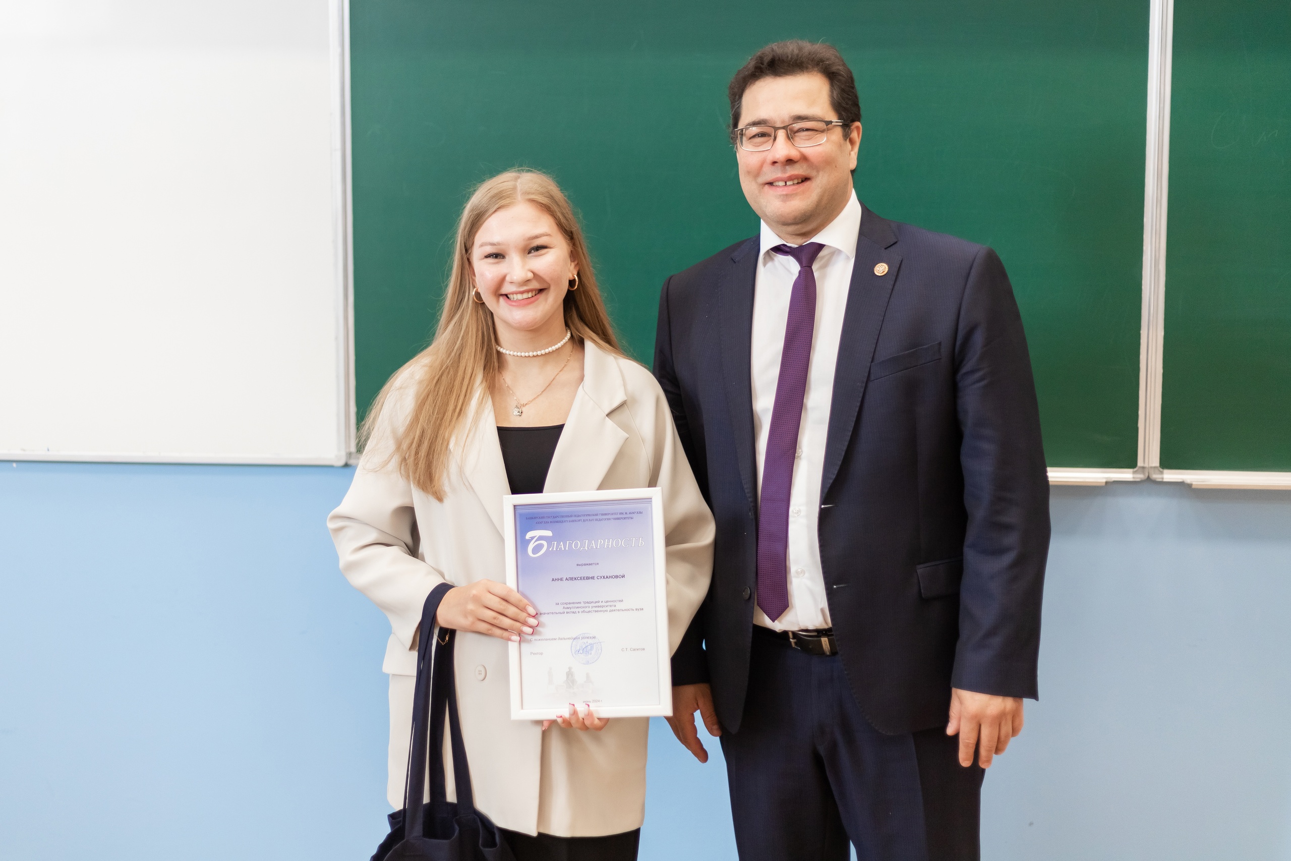 Студентке кафедры специальной педагогики и психологии Султановой Яне (группа СОЛОГ-31-21) был вручен Диплом победителя в номинации «Сообщество молодых», а Сухановой Анне (группа СОЛОГ-41-20) - Благодарность за сохранение традиций и ценностей Акмуллинского университета и значительный вклад в общественную деятельность вуза.