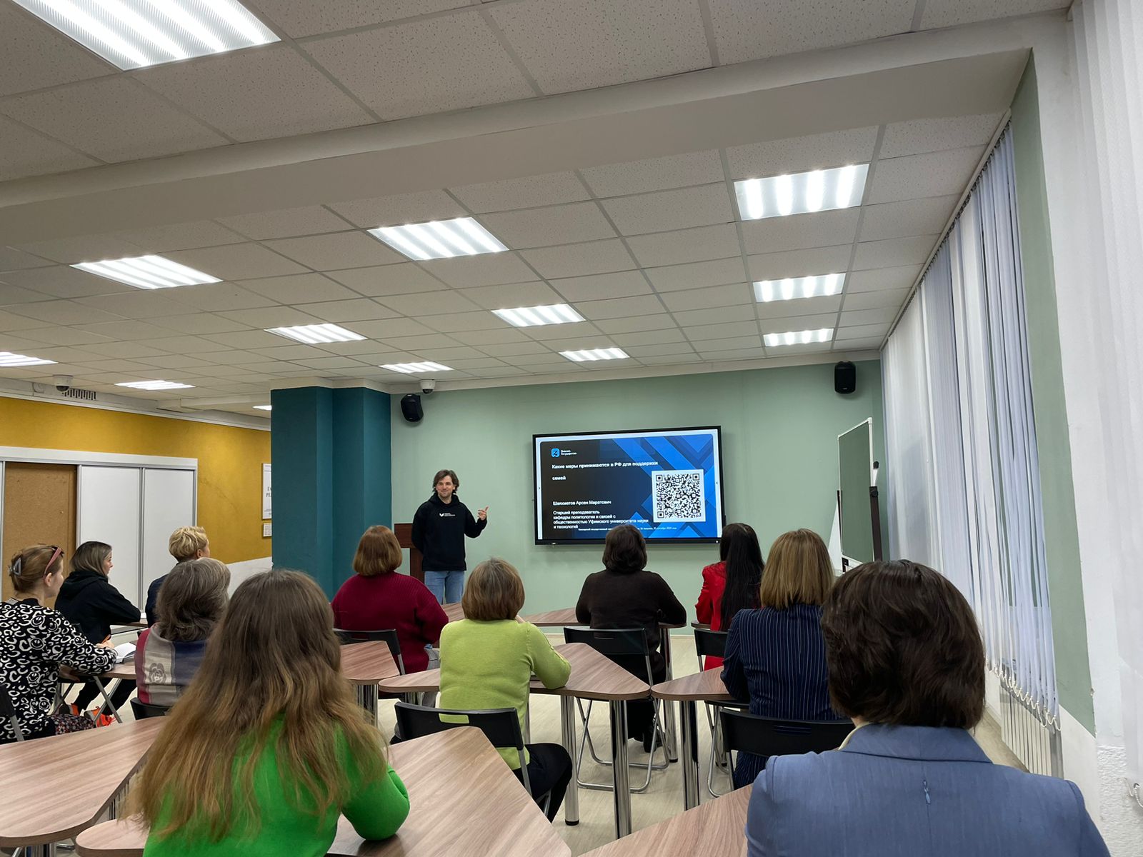 На лектории была рассмотрена тема: «Меры государственной поддержки семей в РФ». В качестве лектора выступил Арсен Шаяхметов, лектор Российского общества «Знание», старший преподаватель Уфимского университета науки и технологий.