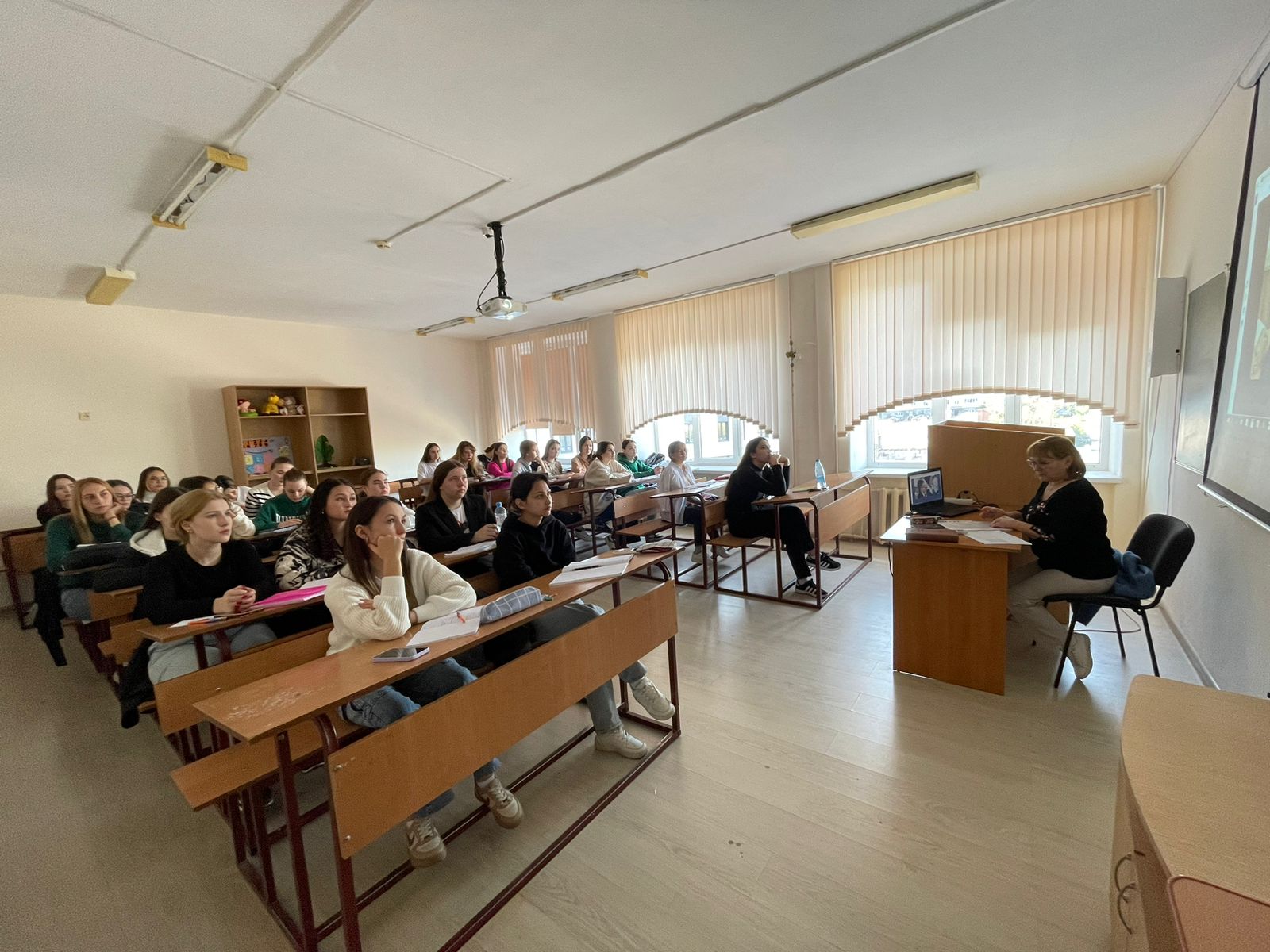 Также студенты рассказали о своих первых учителях, любимых учителях, о том, чем они запомнились, чему научили; посмотрели видеоролик об учителях и школах разных эпох, а также о том, что их объединяет, который комментировал Владимир Ростиславович Мединский, помощник Президента Российской Федерации, Председатель Российского военно-исторического общества, автор книг и учебников по истории России; убедились, что быть учителем не только большая ответственность, но и огромное счастье!