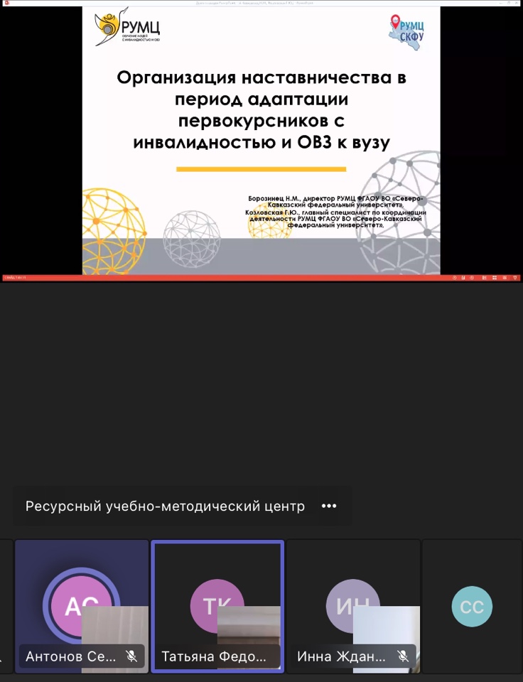 В рамках вебинара участники обсудили актуальные вопросы организационно-методического и психолого-педагогического сопровождения студентов-первокурсников с ОВЗ и инвалидностью в период их адаптации к условиям обучения в учебной группе, проживания в общежитии, вопросы профилактики их социально-психологической дезадаптации, а также современные технологии взаимодействия со студентами данной категории.