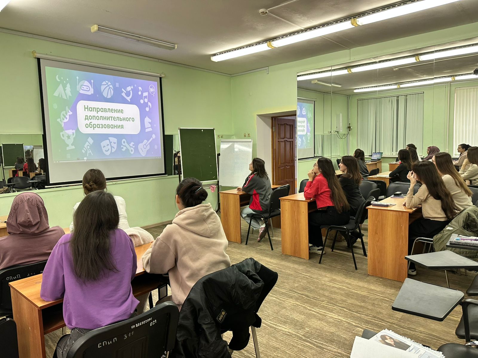 10 октября 2024 года в рамках Всероссийского просветительского проекта «Россия - мои горизонты»» со студентами групп СОДД-21-23, СОЛОГ-21-23, СОДД-31-22, СОЛОГ-31-22 (42 человека) ст. преподаватели кафедры СПиП Дильмухаметова Р.С., Зиганурова Р.В. провели практико-ориентированное занятие. Из видеролика «Формула выбора профессии» студенты узнали о семи важных элементах, входящих в формулу выбора профессии. Особое внимание во время занятия студенты уделили обсуждению компетенций специалиста профессий «учитель-логопед», «учитель-дефектолог».
