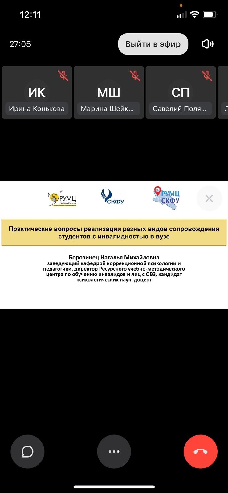 30 октября зав.кафедрой специальной педагогики и психологии Цилюгина И.Б. приняла участие в общероссийском сетевом вебинаре «Практические вопросы реализации разных видов сопровождения студентов с инвалидностью в вузе». Операторами проведения вебинара выступили РУМЦ Вятского государственного университета, РУМЦ Северо-Кавказского федерального университета, РУМЦ Южного федерального университета, РУМЦ Тюменского государственного университета.