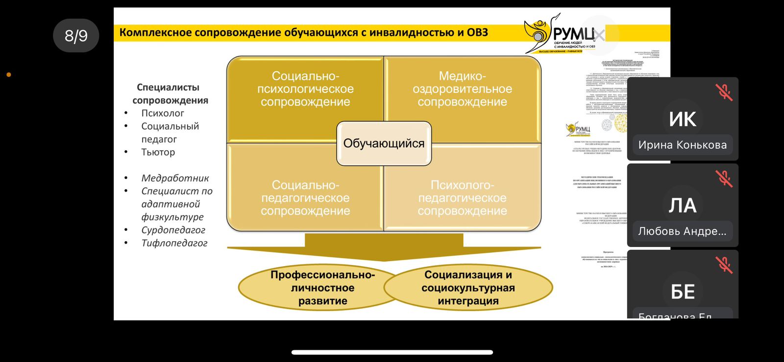 Заведующий кафедрой специальной педагогики и психологии Цилюгина И.Б. приняла участие в общероссийском сетевом вебинаре «Практические вопросы реализации разных видов сопровождения студентов с инвалидностью в вузе»