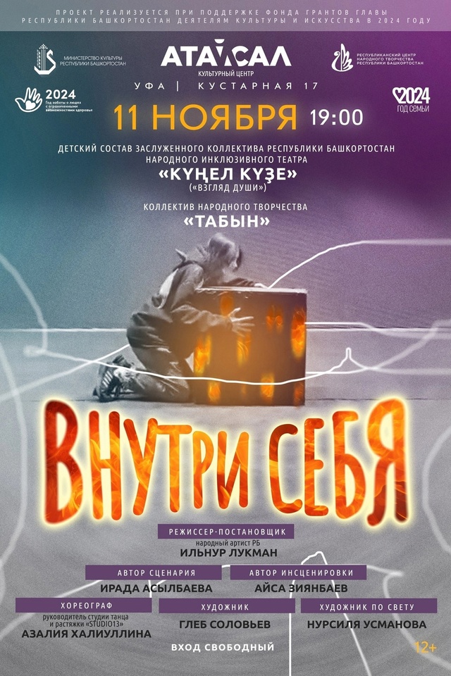 11 ноября 2024 года студенты 1 курса кафедры специальной педагогики и психологии вместе с куратором ст.преподавателем кафедры СПиП Дильмухаметовой Р.С. посетили уникальный спектакль «Внутри себя», который представили актеры двух коллективов Культурного центра «Атайсал» РЦНТ – коллективы народного творчества «Табын» и инклюзивного театра «Күңел күҙе». Проект был приурочен к объявленному 2024 году в России «Году Семьи» и «Году заботы о людях с ограниченными возможностями здоровья» в Республике Башкортостан. Спектакль «Внутри себя» -  это не просто история о жизни ребёнка в семье и обществе, это глубокое погружение в мир любви, понимания и принятия. Игра актёров была настолько проникновенной, что каждый зритель испытал бурю эмоций. Зал буквально жил вместе с героями на сцене, а по окончании спектакля долго не утихали громкие аплодисменты.