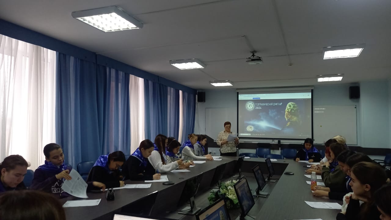 16 ноября 2024 года, в 12:00 по местному времени студенты и преподаватели Института педагогики приняли участие в X (юбилейной) Международной просветительской акции «Географический диктант», среди которых были также и граждане Республики Кыргыстан. В Акции приняли участие 70 человек в двух форматах – очном и дистанционном.