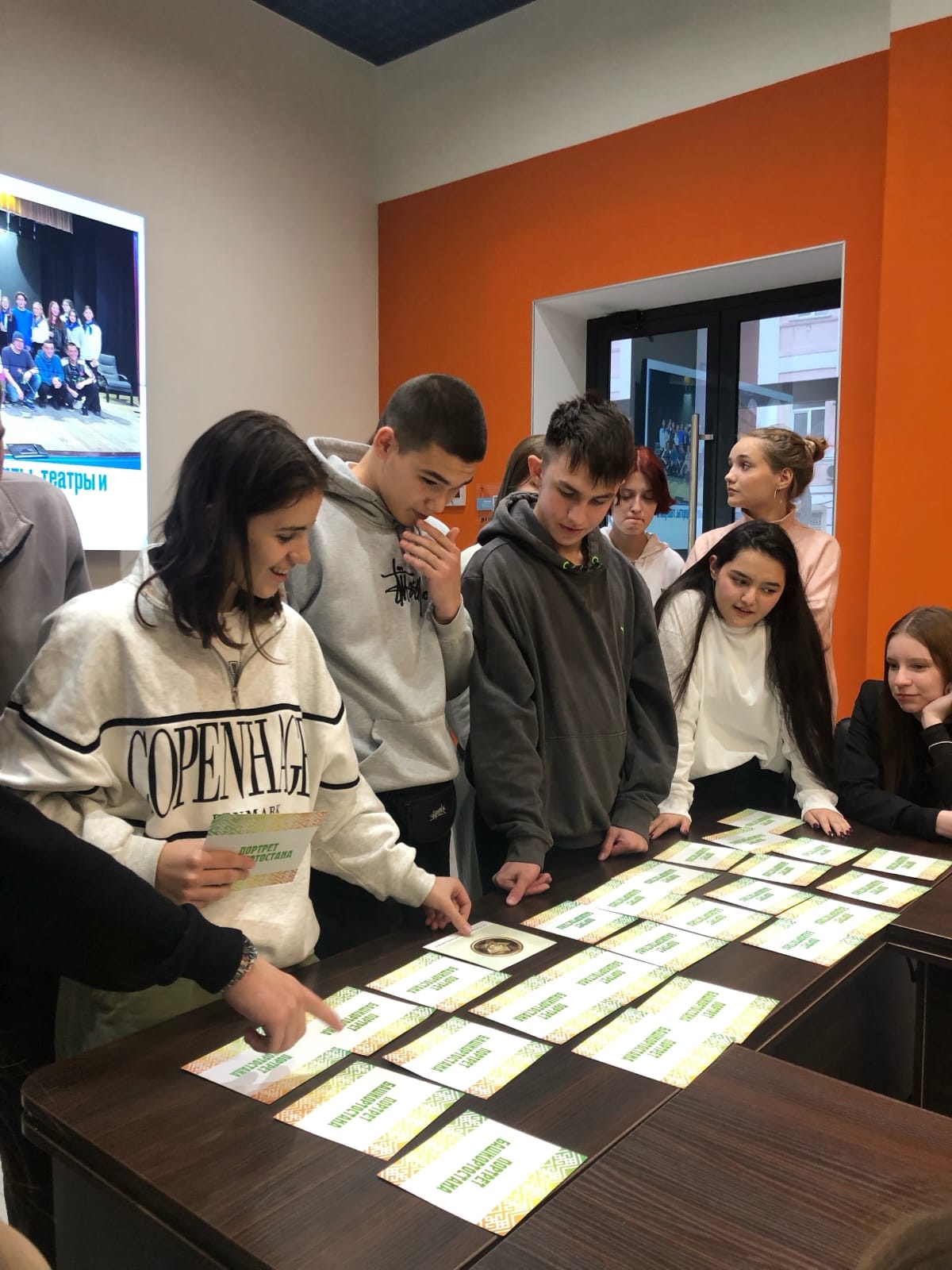 Студенты 3 курса, группы ПО_НО-31-22, волонтеры отряда «Палитра» Рысбаева Тахмина, Чотбаева Мырзайым и Егорова Елизавета (руководитель: канд. пед. наук, доцент Савельева Е.А.) рассказали школьникам об особенностях содержания образовательного курса по направлению Педагогическое образование, профиль «Начальное образование» на кафедре теорий и методик начального образования и провели со школьниками игру-лото «Предметы личного пользования солдат и офицеров времен Великой Отечественной войны 1941-1945гг.».