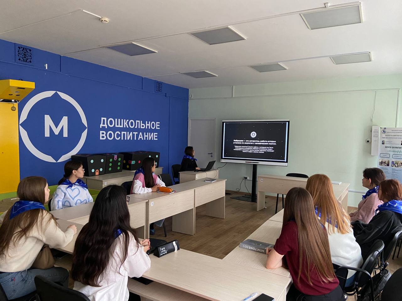 18 октября 2024 года в рамках просветительских мероприятий Всероссийского проекта «Разговоры о важном!» для студентов, обучающихся по направлению «Педагогическое образование», профиль подготовки «Дошкольное образование» проведен тематический урок: «Искусственный интеллект и человек. Стратегия взаимодействия». Сегодня мы говорили о том, что такое искусственный интеллект и в каких сферах жизни нам приходится с ним сталкиваться. Мы согласны с утверждением, что современные технологии искусственного интеллекта с точки зрения простого пользователя достигли высокого уровня развития. Иногда мы даже не можем отличить, общаемся мы с человеком или с машиной. Обсудили и привели множество примеров к тезису: «Развитие искусственного интеллекта имеет важные позитивные эффекты для государства и граждан». Особый интерес вызвал видеоролик «Вклад российских ученых в создание искусственного интеллекта», рассуждали, как искусственный интеллект может быть использован в обучении, профессиональной деятельности. Мы согласны с утверждением, что каждый человек должен иметь возможности доступа к технологиям искусственного интеллекта, но при этом быть защищен от негативных последствий их применения.