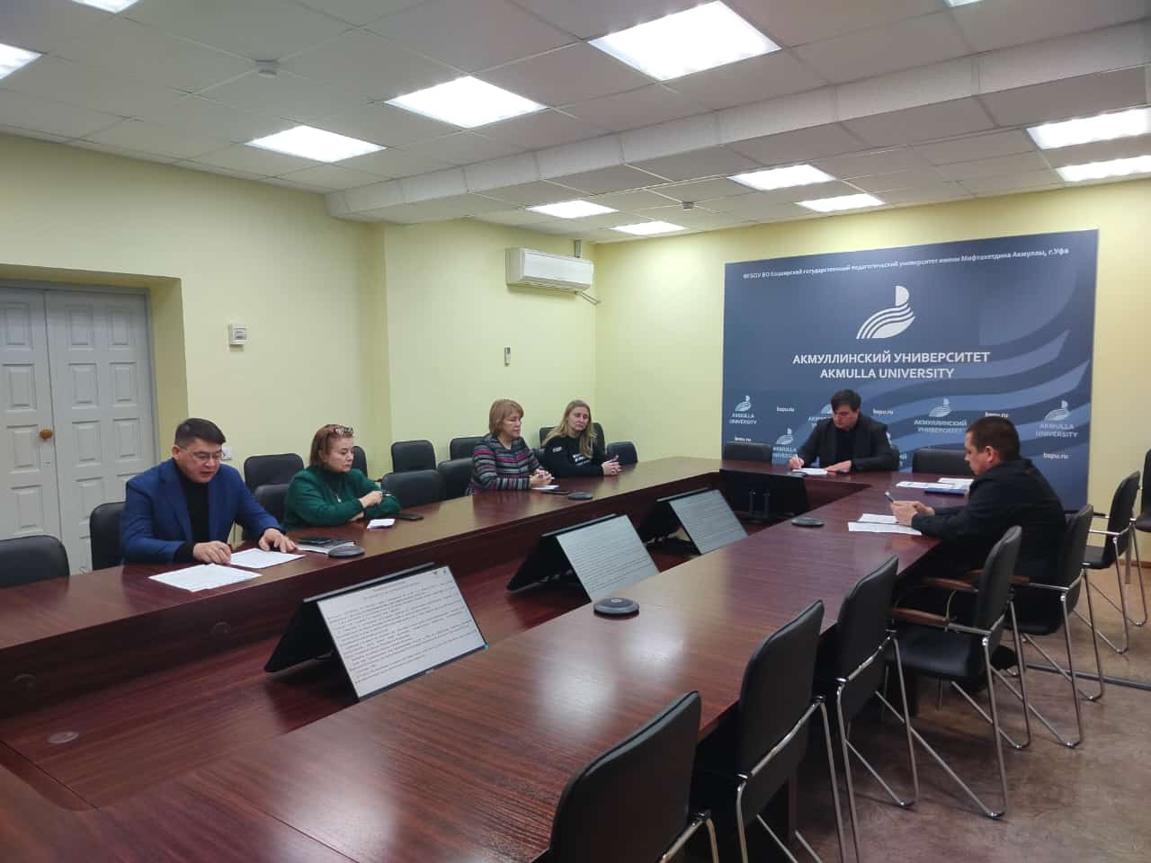 Началось собрание с приветствия и.о. ректора БГПУ имени М. Акмуллы Салават Сагитова, модератором встречи выступил Проректор по молодежной политике и международным связям Радик Юлбаев.