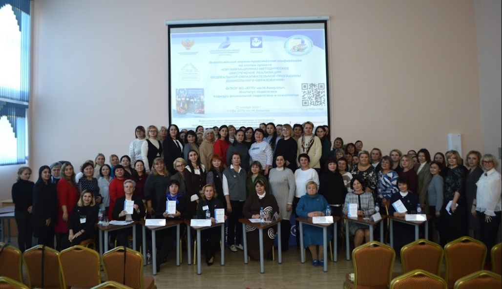 27.11.2024г. прошло торжественное открытие Всероссийской научно-практической конференции по итогам грантового проекта в рамках Национального педагогического форума (г. Уфа, 27 ноября 2024 года) «Организационно-методическое обеспечение реализации Федеральной образовательной программы дошкольного образования (ФОП ДО)» организованного Институтом педагогики и кафедрой дошкольной педагогики и психологии.