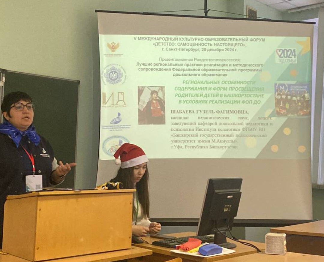 20.12.2024г. Шабаева Г.Ф.-  спикер научной сессии «Лучшие региональные практики реализации и методического сопровождения ФОП ДО» Международного культурно-образовательного форума "Детство: самоценность настоящего", РГПУ им. А.И. Герцена, г. Санкт Петербург