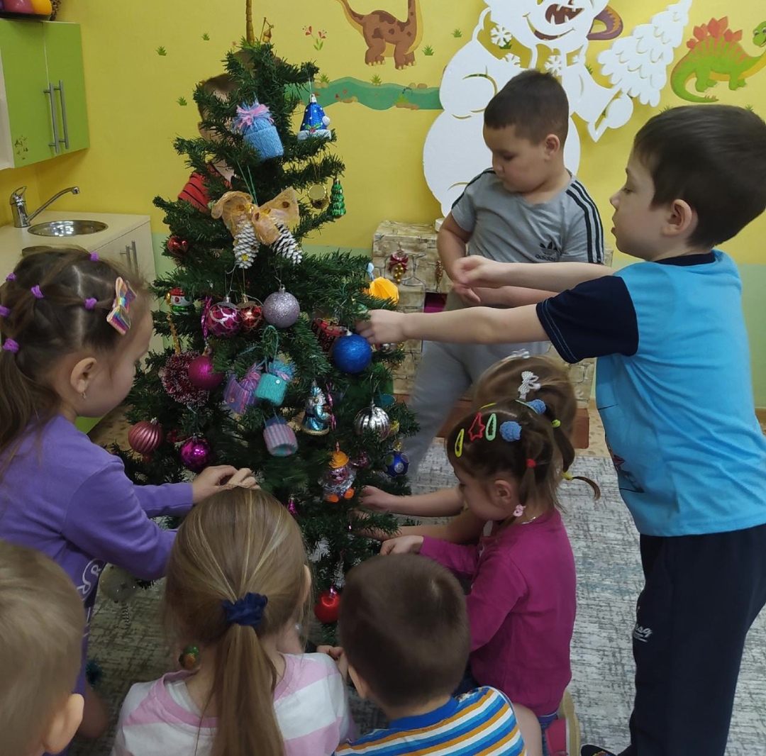 Дети нарядили ёлочку в группе, водили хороводы и рассказали о том, как готовятся к празднованию Нового года дома. Выполнили аппликацию и нарисовали рисунки, чтобы подарить их Дедушке Морозу.
