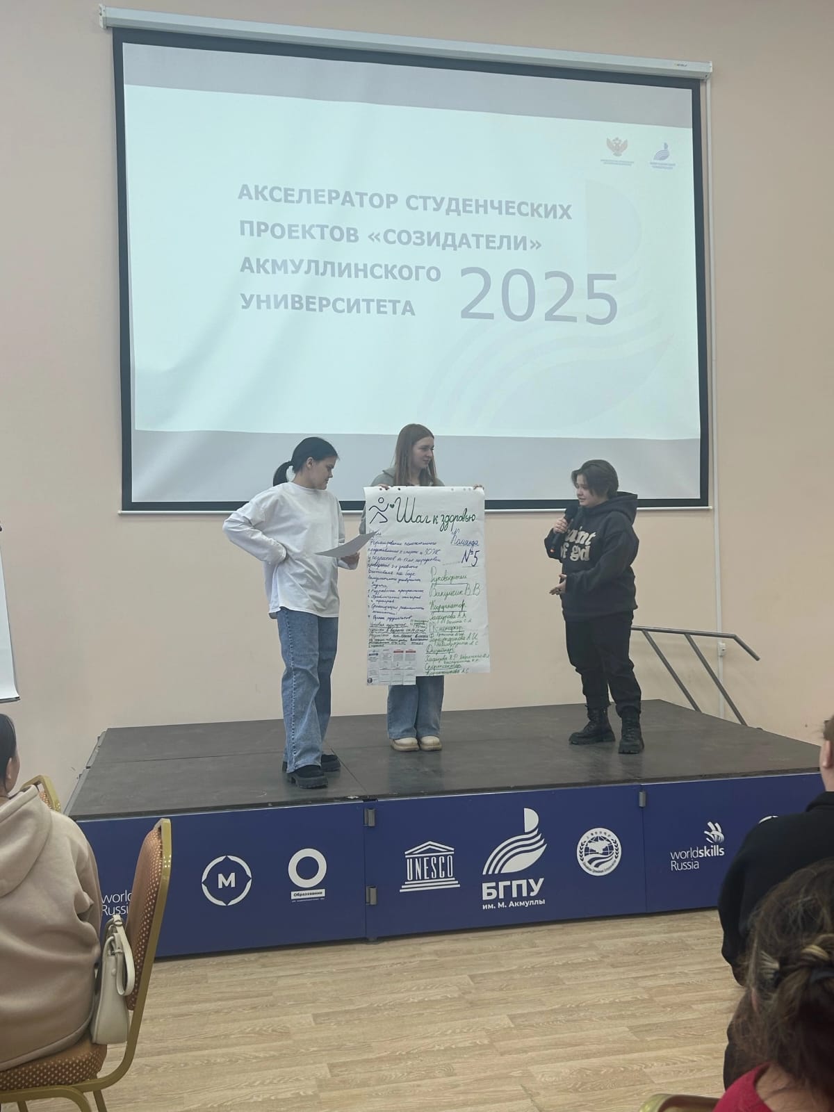 22 января 2025 года в Акмуллинском университете начал работу Акселератор студенческих проектов «Созидатели» – университетская программа, нацеленная на выявление и поддержку молодежных инициатив в сфере социального проектирования. Она предоставляет студентам, проектным командам и сотрудникам вуза возможность получить ценные знания и навыки для реализации социально значимых проектов.