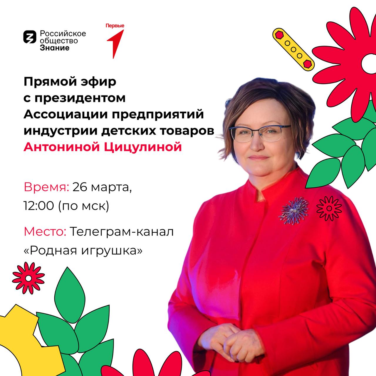26 марта 2025 г. состоялся прямой эфир по вопросам экспертной оценки заявок Всероссийского конкурса  "Родная Игрушка" с президентом Ассоциации предприятий индустрии детских товаров Антониной Цицулиной.