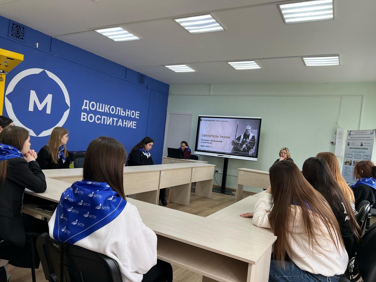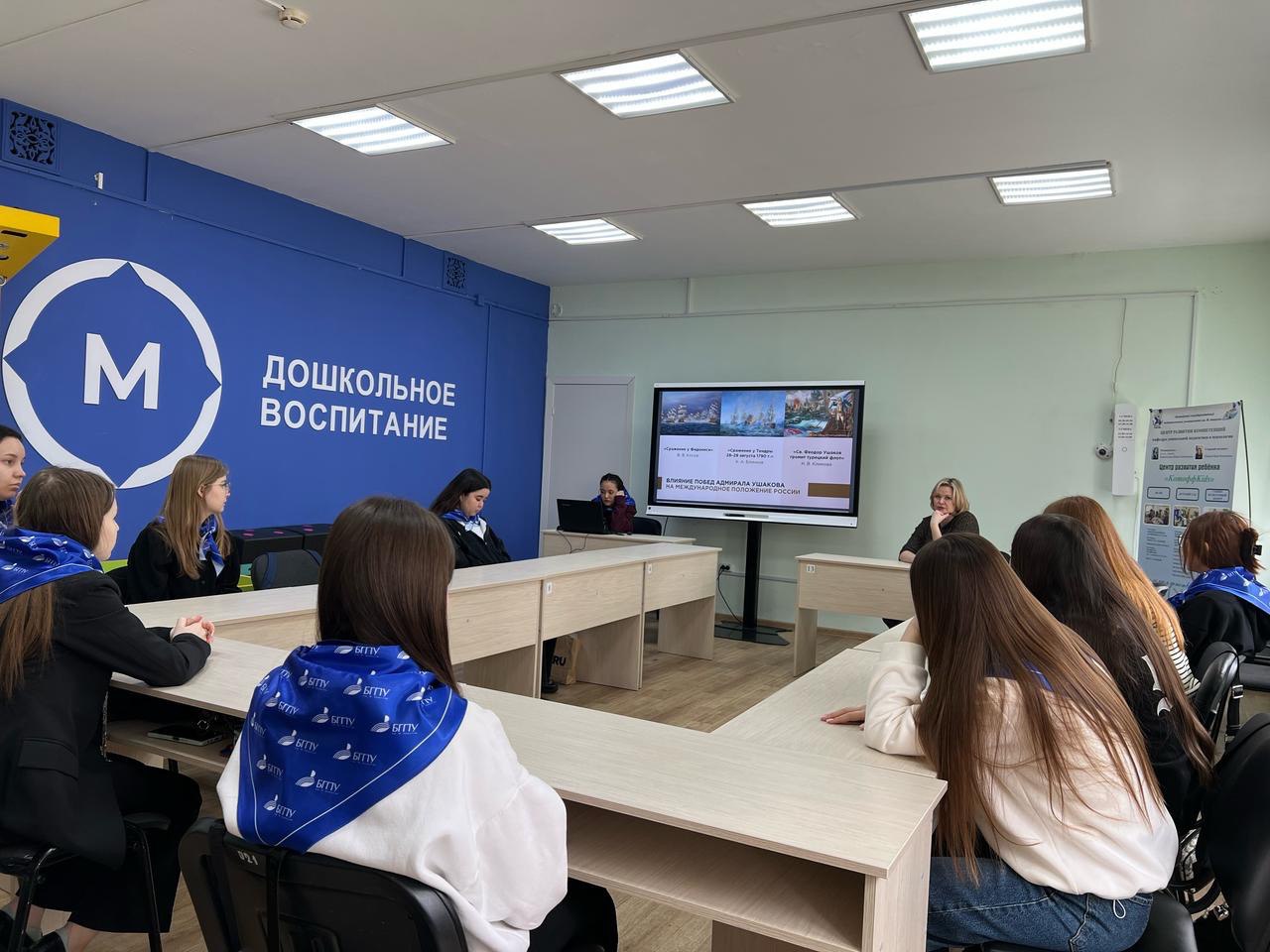 24 марта 2025 года в рамках просветительских мероприятий Всероссийского проекта «Разговоры о важном!» для студентов, обучающихся по направлению «Педагогическое образование», профиль подготовки «Дошкольное образование» проведен тематический урок: «Что значит служить Отечеству? 280 лет со дня рождения Ф. Ушакова». Сегодня мы говорили о мужестве, долге и чести, вспоминали имена тех, кто вошел в историю страны: адмирала Фёдора Ушакова и святого Патриарха Тихона. Отвечали на предложенные вопросы, аргументировали ответы. Просматривая видеоролики, рассуждали над темами «военное мастерство», «служение Отечеству», «героизм» и другие. Вспомнили исторические события: морские сражения под командованием Ф.Ушакова, которые стали наиболее значимыми для России. Мы согласны, что служение отечеству - это не только героические подвиги на полях сражений, но и благородный, самоотверженный труд граждан, стремящихся к процветанию своей родной земли.
