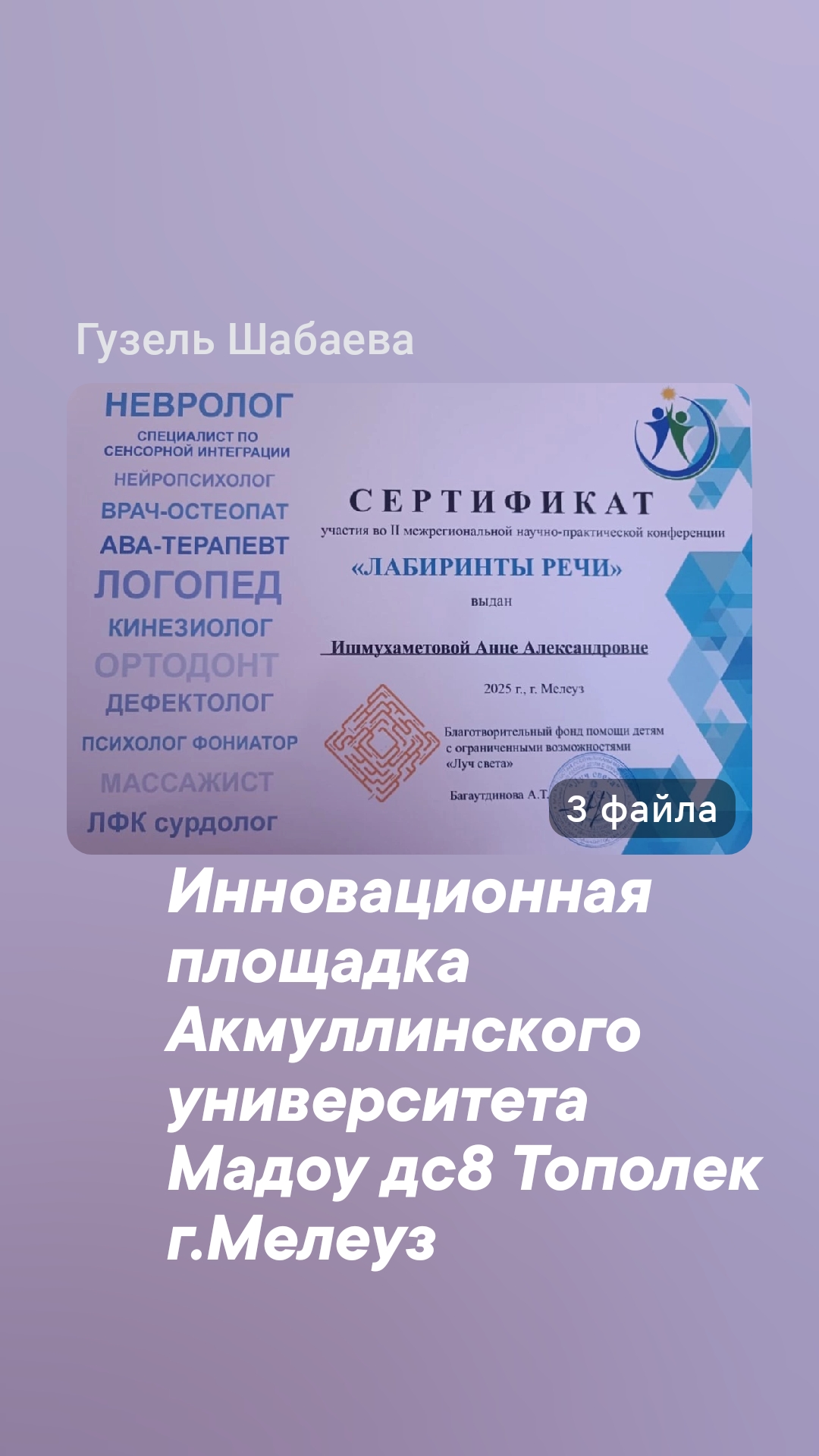 21.03.2025 г. в городе Мелеуз состоялась межрегиональная научно-практическая конференция "Лабиринты речи", организованная благотворительным фондом помощи детям с ограниченными возможностями здоровья"Луч света", в которой приняли участие логопеды и дефектологи г.Мелеуз и г. Кумертау Республики Башкортостан.