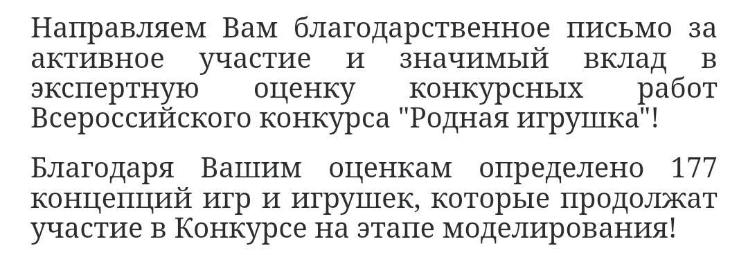 Родная игрушка: "Благодаря Вашим оценкам определено 177 концепций игр и игрушек, которые продолжат участие в Конкурсе на этапе моделирования!