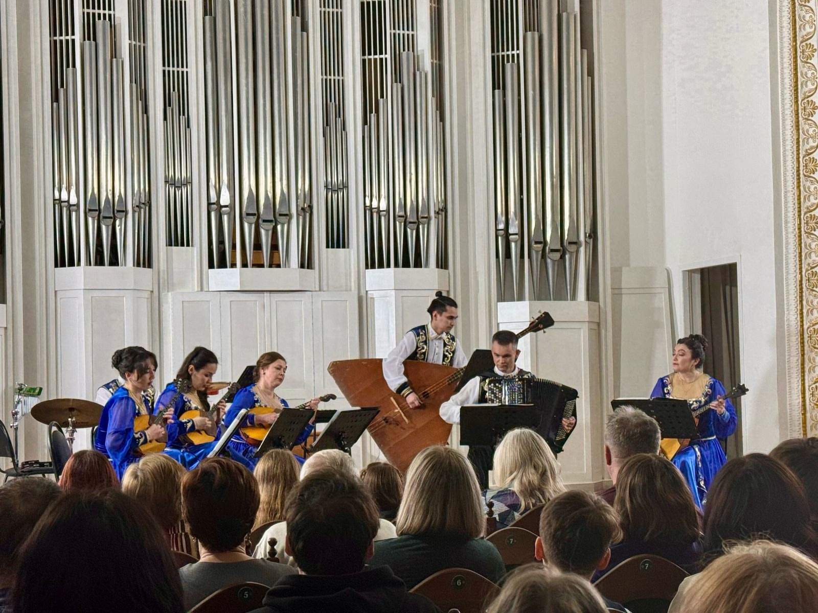 14 апреля в малом зале Башкирской государственной филармонии состоялся концерт Народного коллектива - ансамбля русских народных инструментов «Контрасты» (руководитель Заслуженный работник культуры РБ Кадырова Ф.Ф.). Концерт был приурочен сразу к нескольким памятным датам: 100-летие со дня рождения композитора Наримана Сабитова и 80-летия со дня Победы в Великой Отечественной войне. В концерте прозвучала разнообразная программа современных и зарубежных композиторов, а также были исполнены переложения и обработки народных мелодий. Студенты группы СОДД-21-23, посетившие концерт, получили огромное удовольствие и яркие эмоции, погрузившись в мир музыки.