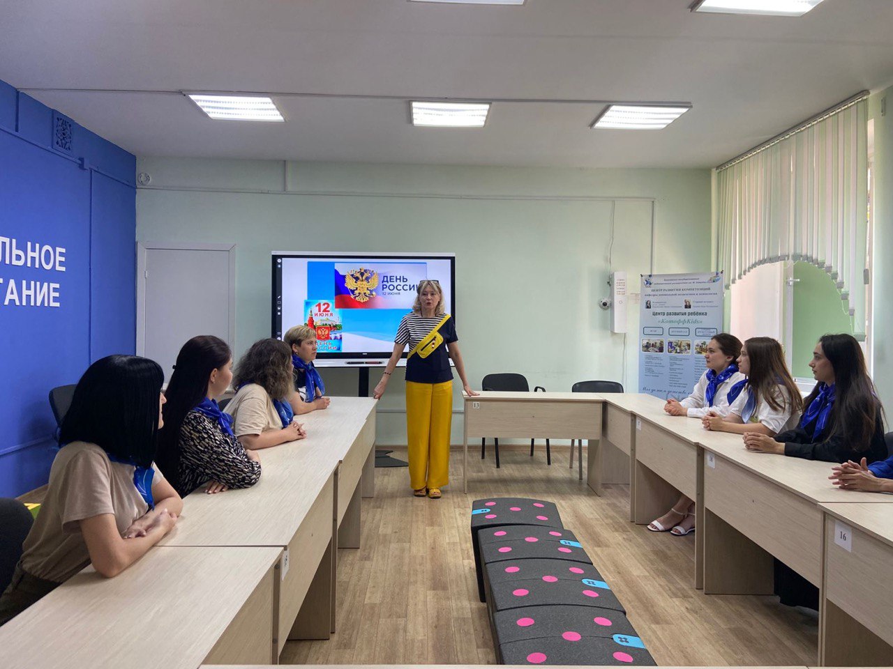 Со студентами института педагогики кафедры ДПиП  ПОБЯ_ДО-41-21 (двухпрофильный бакалавриат), ПО_ДО-11-24 и СОДД-31-22 преподаватели кафедры Дошкольной педагогики и психологии провели патриотический час, посвященный Дню России.