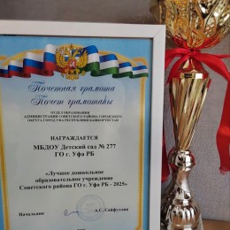 По итогам работы инновационная площадка кафедры ДПиП Института педагогики Акмуллинского университета МБДОУ Детский сад N 277 был награжден Почетной грамотой и кубком как лучшее дошкольное учреждение Советского района.