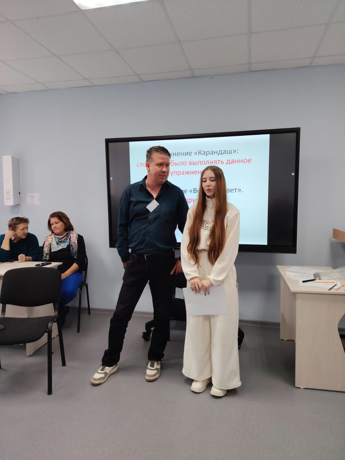Далее Алина Халиловна Ахмедьянова провела тренинг на тему «Разговоры по душам», который включал определенные упражнения, формирующие поэтапную готовность родителей и детей к сотрудничеству, и совместному решению сложных проблем: упражнение «Кто это?», «Ладони матери моей», «Карандаш», «Вопрос-ответ», «Зеркало».