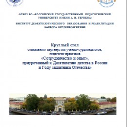 31 октября в РГПУ им. А.И. Герцена состоялся круглый стол социального партнёрства учёных-сурдопедагогов, педагогов-практиков «Сотрудничество и опыт». Мероприятие, приуроченное к Десятилетию детства в России и Году защитника Отечества, объединило ведущих учёных-сурдопедагогов и педагогов-практиков со всей страны.