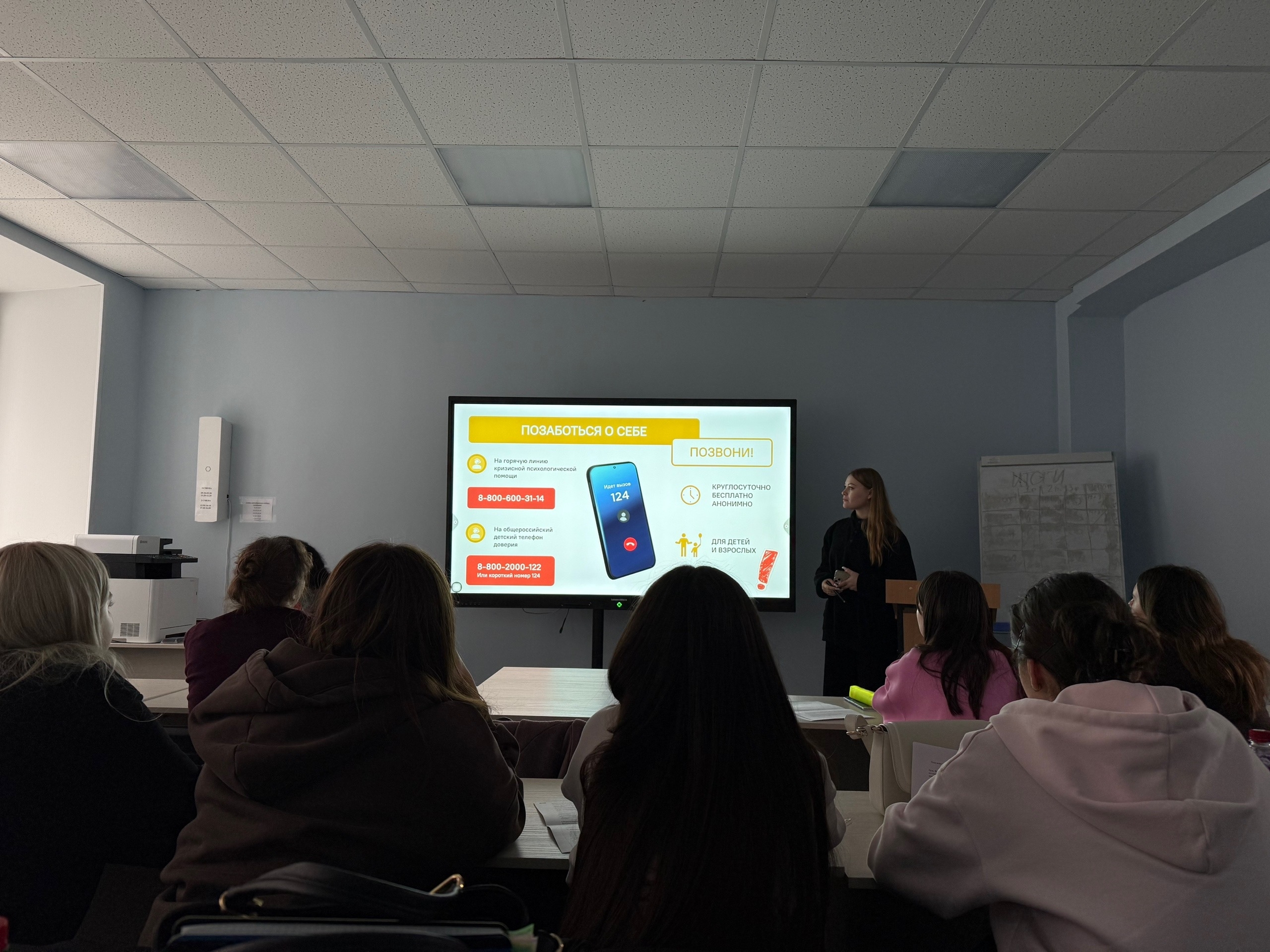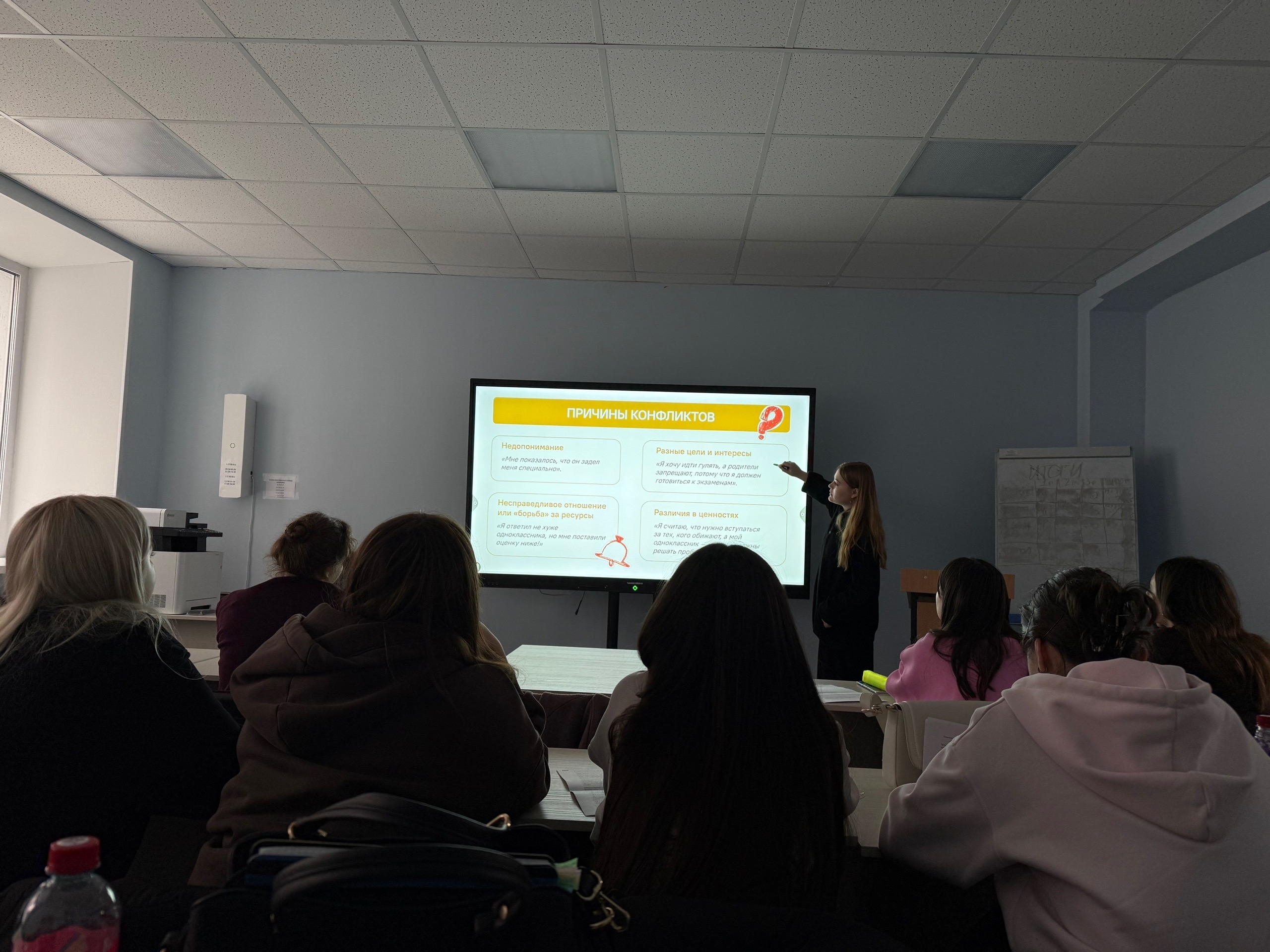 17 ноября 2025 года в рамках просветительских мероприятий «Разговор о важном» для студентов 1 курсов, обучающихся по направлению «Педагогическое образование», профиль «Начальное образование», была организована беседа на тему «Как решать конфликты и справляться с трудностями? Ко Дню психолога». В качестве докладчиков выступили студентки 2 курса и 4 курса направления «Педагогическое образование», профиль «Начальное образование», Эвелина Иванова, Азалия Зайнуллина, Елизавета Егорова и доцент кафедры ТиМНО Е.А. Савельева.