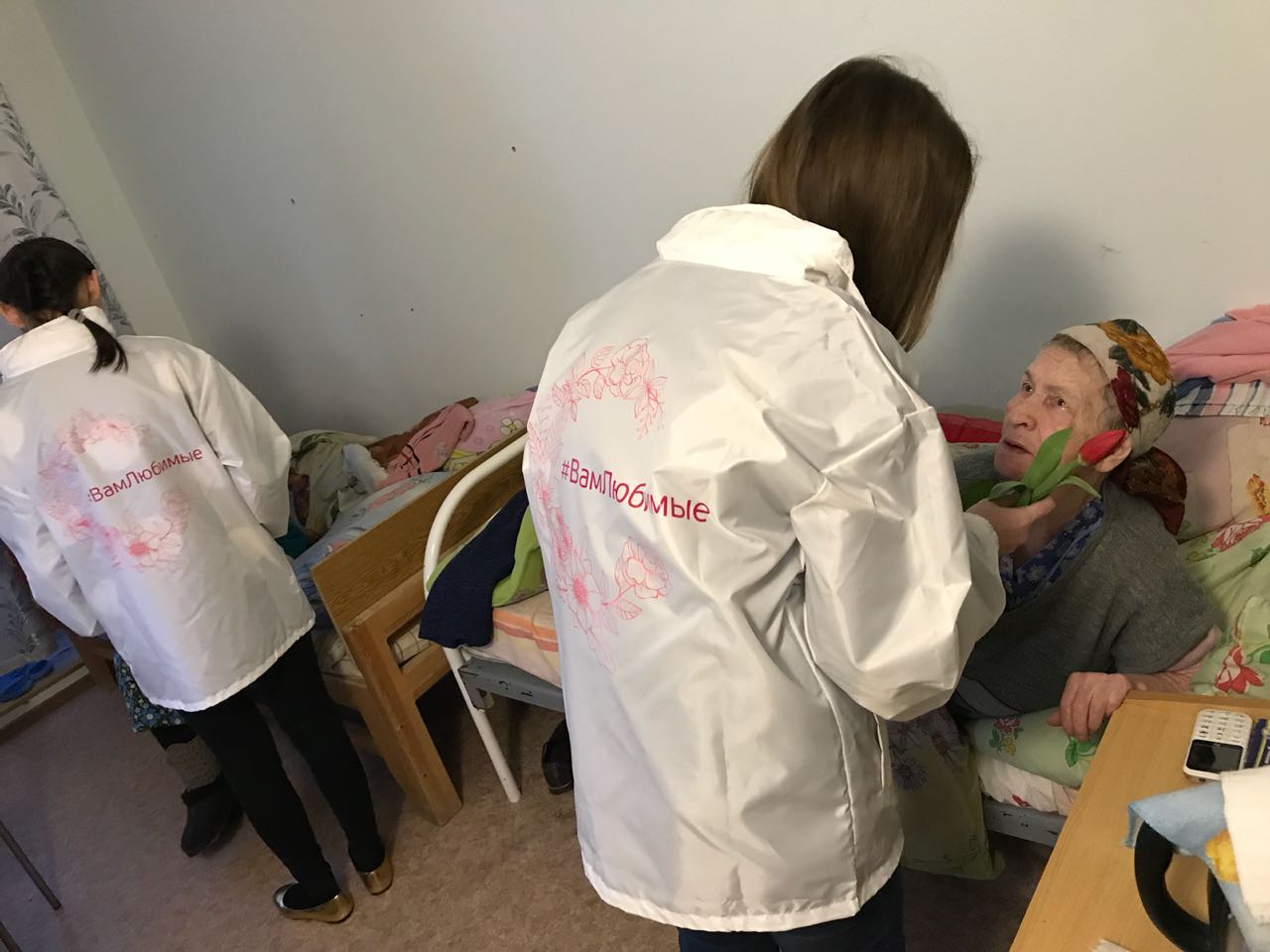 Екатерина Савельева, руководитель волонтерского отряда «Палитра» Института педагогики БГПУ им. М. Акмуллы и Екатерина Ларькова, волонтер отряда «Палитра», студентка 3 курса направления «Дошкольное образование»: "Сегодня был необыкновенный теплый и радостный день! Мы пришли в интернат поздравить его жительниц с огромными букетами ярко-алых, рубиново-красных, оранжевых тюльпанов. Вокруг нас была такая теплая атмосфера. Женщины нас обнимали, благодарили, приглашали на чай, желали всего доброго... На сердце у них и у нас было в этот день очень радостно!"