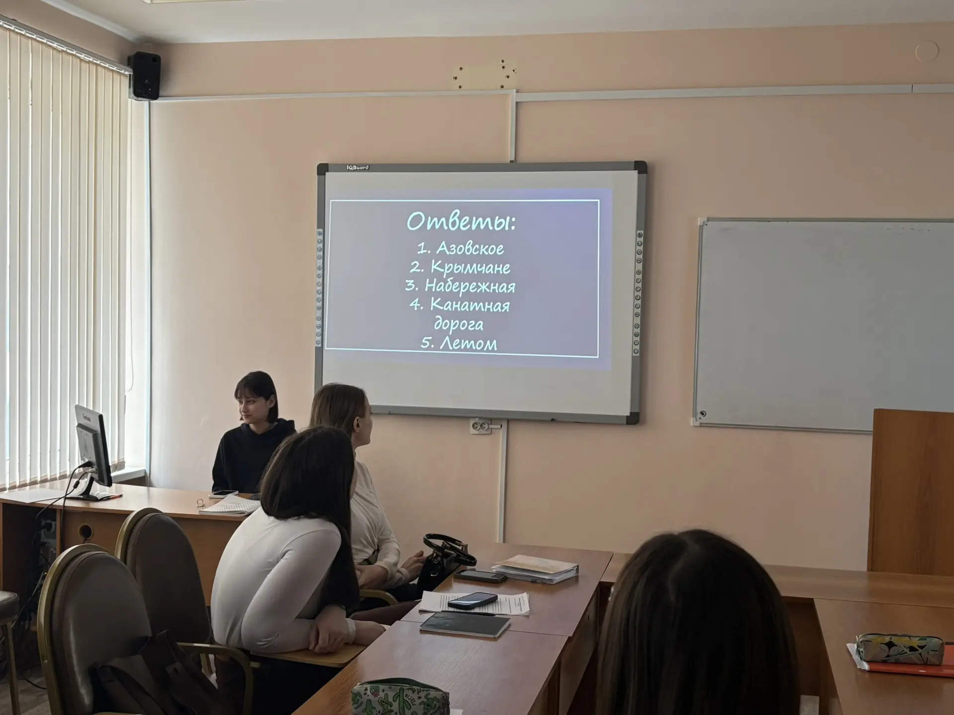 18 марта со студентами группы СОДД-21-24 под руководством старшего преподавателя кафедры СПиП Дильмухаметовой Р.С. в рамках проведения Всероссийской акции «Из Крыма и Севастополя с любовью», ко Дню воссоединения Республики Крым и города федерального значения Севастополя с Россией была организована и проведена викторина «Наш Крым. Наша Россия». Подготовила и провела викторину студентка группы СОДД-21-24 Аминова Адиля. За основу викторины была взята разработка специалистов ФГЬУ Росдетцентра «Одна страна – одна история». Студенты отвечали на вопросы, разделенных по уровням сложности: от простых, общеизвестных фактов до по-настоящему каверзных, требующих глубоких знаний истории Крыма.