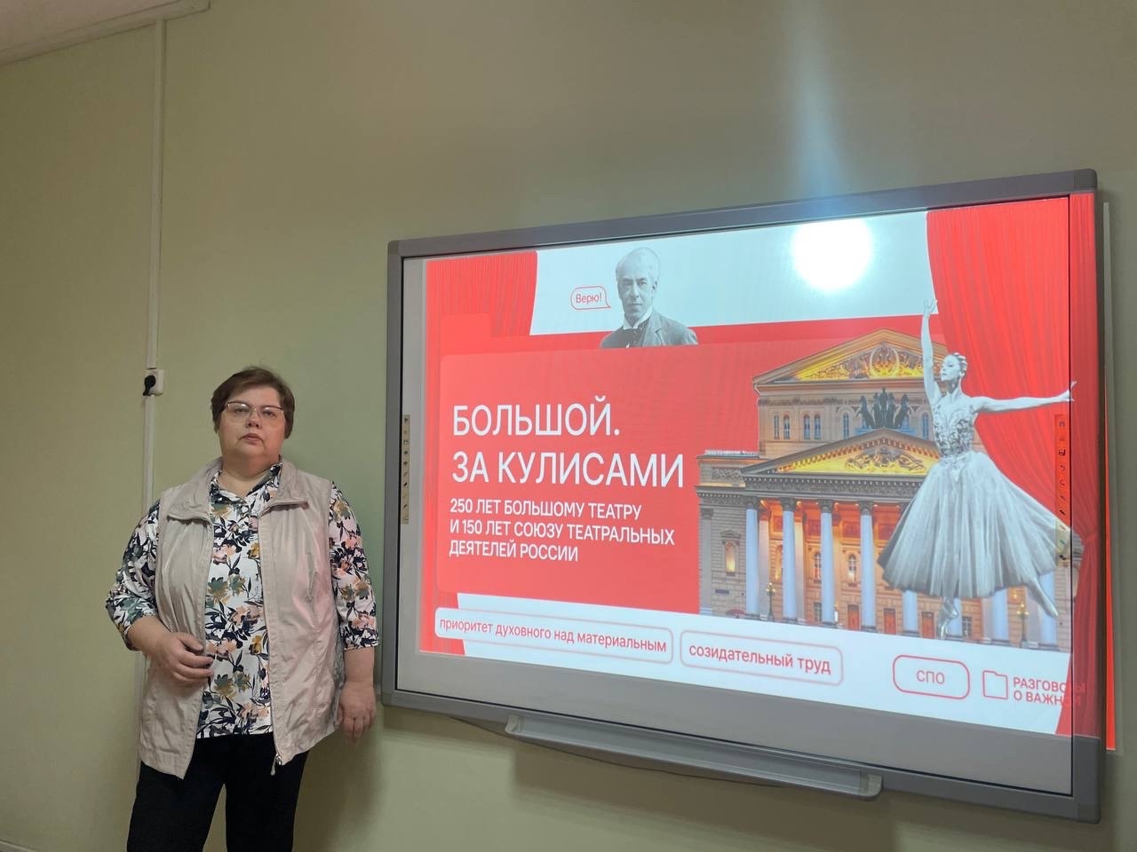В рамках цикла внеурочных занятий «Разговоры о важном» для группы ППОСП-21-24 состоялось мероприятие, посвященное 250-летию Большого театра и богатому наследию русского театрального искусства. Занятие провела доцент кафедры профессионального и социального образования Екатерина Владимировна Трофимова.