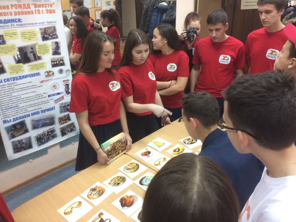 21 ноября 2018 года Волонтерскому центру «Орбита» исполнилось 10 лет! С 2008 года в подростковом клубе «Орбита» создалась ячейка Регионального молодежного добровольческого движения «Вместе» РБ. Сегодня - это уже большой и мощный волонтерский центр «Орбита». В честь дня рождения был организован слет волонтерских отрядов Кировского района «Вместе-здорово!», который объединил 70 подростков -волонтеров подростковых клубов «Орбита», «Прометей», «Аврора» и гимназию №158 им. М. Карима, лицей №160 и СОШ №126.  письма. На слете волонтёрами РОМДД «Вместе», студентками 2 курса направления «Начальное образование» БГПУ им. М. Акмуллы г. Уфы Дарьей Бакулевой, Маргаритой Мусиной, Ларисой Гришаевой была проведена игра-лото «Национальные кухни Башкортостана». Игра  входит в проект «Настольные игры о Родине» (руководитель проекта «Настольные игры о Родине» РОМДД «Вместе» Республики Башкортостан — к. п. н., доц. кафедры теорий и методик начального образования БГПУ им. М. Акмуллы Савельева Е.А.)  и предоставляет возможность знакомства с культурным наследием нашей Родины при обеспечении доступа к играм лиц с нарушениями зрения. Проект проходит с использованием гранта Президента Российской Федерации на развитие гражданского общества, предоставленного Фондом президентских грантов.  В играх-лото приняло участие 33 человека, из них  12 человек с нарушением зрения.