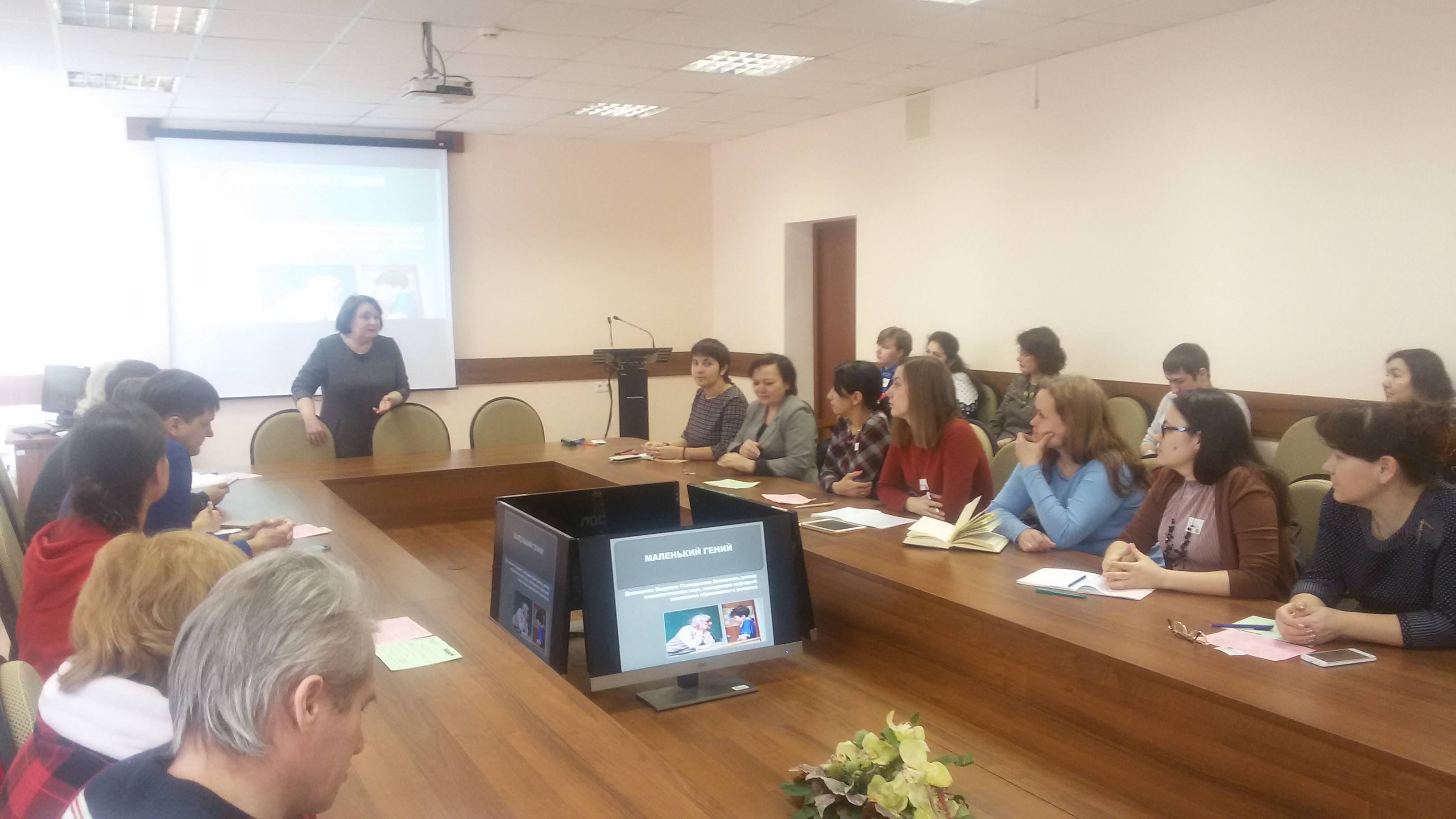 4 марта  лекцию "Маленький гений" для родителей провела зав. кафедрой психологии образования и развития факультета психологии БГПУ им. М. Акмуллы, д.психол.наук, профессор  Дмитриева Л.Г. В обсуждении вопросов воспитания и развития одаренности у детей приняли участие Мухаметрахимова С.Д., к.психол.наук, доцент кафедры  психологии образования и развития, Шабаева Г.Ф., к.п.н., доцент кафедры Дошкольной педагогики и психологии, а также психологи-магистранты, которые организовали для родителей практикум.