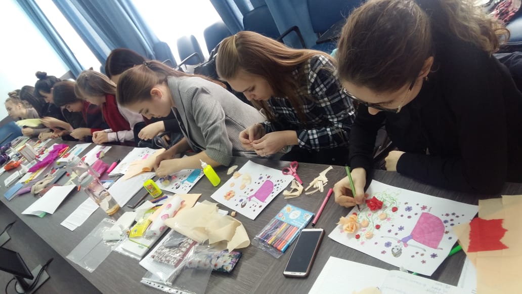 1 марта 2019 года специалистом по воспитательной работе, доц. кафедры ТиМНО Е.А. Савельевой для 1-х курсов (направления «Дошкольное образование» и «Начальное образование») был проведен кураторский час. В ходе мероприятия студенты были ознакомлены с содержанием образовательного семинара «Современные аспекты первичной профилактики нехимических видов аддикций в детско-молодежной среде». Также студенты подготовили праздничные открытки для мам, выполненные своими руками.