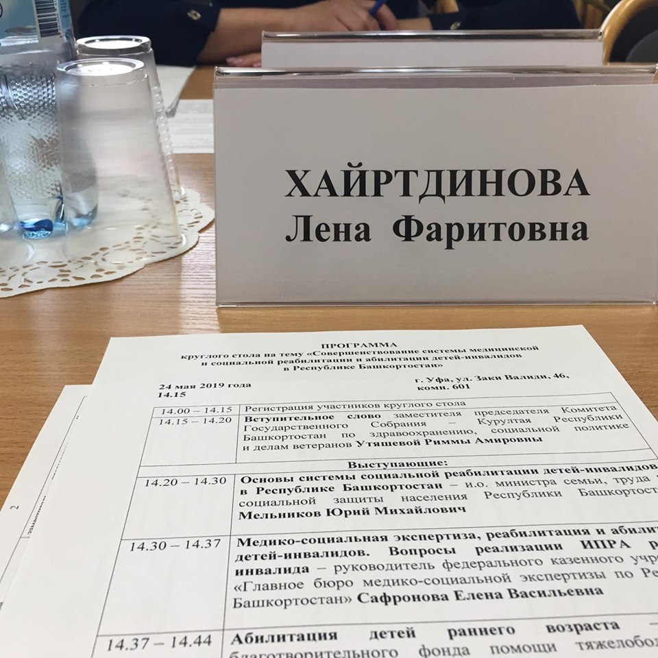 24 мая доцент кафедры Специальной педагогики и психологии Л.Ф.Хайртдинова приняла участие в Круглом столе по теме "Совершенствование системы медицинской и социальной реабилитации и абилитации детей-инвалидов в Республике Башкортостан", организованного Комитетом Госсобрания Курултая  РБ по здравоохранению, социальной политике и делам ветеранов. В работе Круглого стола приняли участие и.о.министра семьи, труда и социальной политики РБ Ю.М.Мельников, руководитель ФКУ "Главное бюро МСЭ по РБ" Е.В.Сафронова, главный врач Городской клинической больницы Демского района г.Уфы А.В.Мамаева, зам. главного врача Городской детской клинической больницы №17 г.Уфы Р.Р.Федорова, директор центра абилитации "Любимый малыш" Ф.М.Латыпова, руководители Республиканских реабилитационных центров для детей-инвалидов и др.