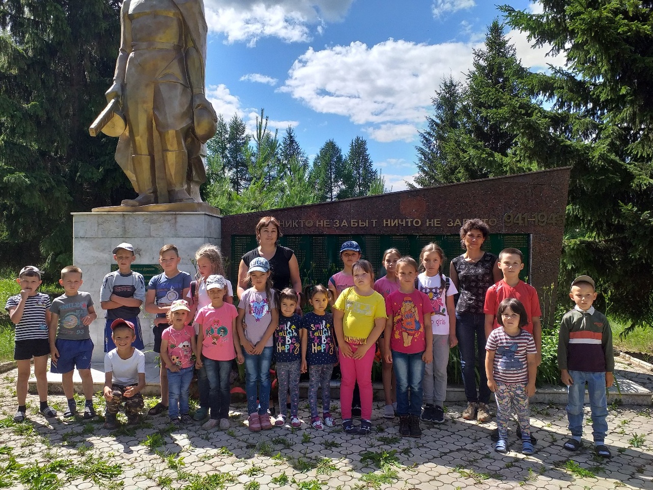 По окончанию мероприятия участники возложили цветы около Памятника павшим воинам в Великой Отечественной войне, почтив память о героях минутой молчания.