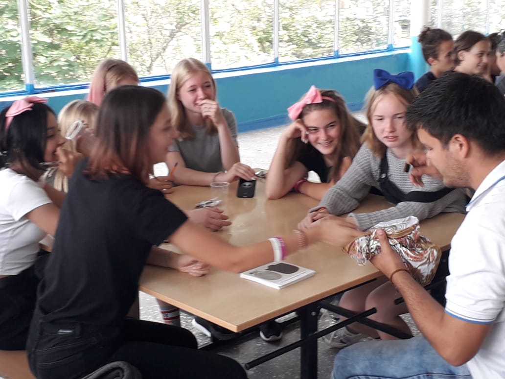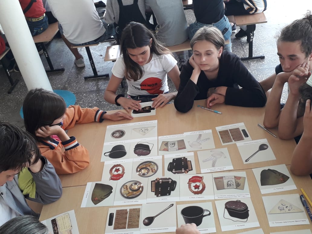 Диана Акбутина (волонтер отряда "Палитра"): «Обычно нашими играми мы одновременно охватываем большое количество людей. В данной игре приняло участие более 90 человек. Ребята и их кураторы очень заинтересовались игрой! Было нескольких этапов: мы тренировали память, отгадывая парные карточки, складывали фронтовые письма-треугольники, развивали тактильные ощущения через определение предметов на ощупь. Группа без патологии зрения имеет возможность приобрести опыт получения информации через тактильные ощущения и лучше начинает понимать лиц с нарушением зрения. Мы пели военные песни, загадывали и отгадывали загадки. На протяжении всего мероприятия атмосфера была радостной и теплой!».
