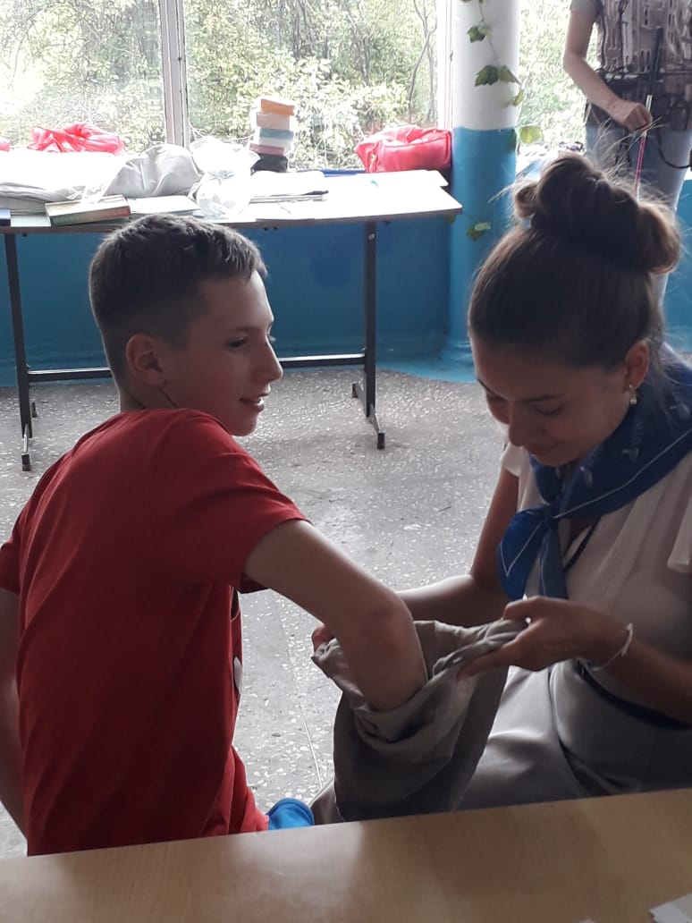 23 июля 2019 года, в рамках мероприятий, направленных на подготовку празднования 75-й годовщины Победы в Великой Отечественной войне, волонтеры отряда «Палитра» Башкирского педуниверситета им. М. Акмуллы совместно с «серебряными» волонтерами - руководителем отряда "Палитра" Екатериной Савельевой и руководителем клуба владельцев собак-поводырей "Актырнак", инвалидом по зрению Гузель Хасановой вместе со своим питомцем - собакой-проводником Андорой, провели военно-историческое лото «Предметы личного пользования солдат и офицеров времен Великой Отечественной Войны 1941-1945 гг.» (на основе экспонатов Республиканского музея Боевой Славы, автор-составитель лото Е.А. Савельева) для участников Республиканского полевого профильного оздоровительно-образовательного лагеря юных туристов-краеведов "Соцветие курая" на территории детского лагеря «Берёзка».
