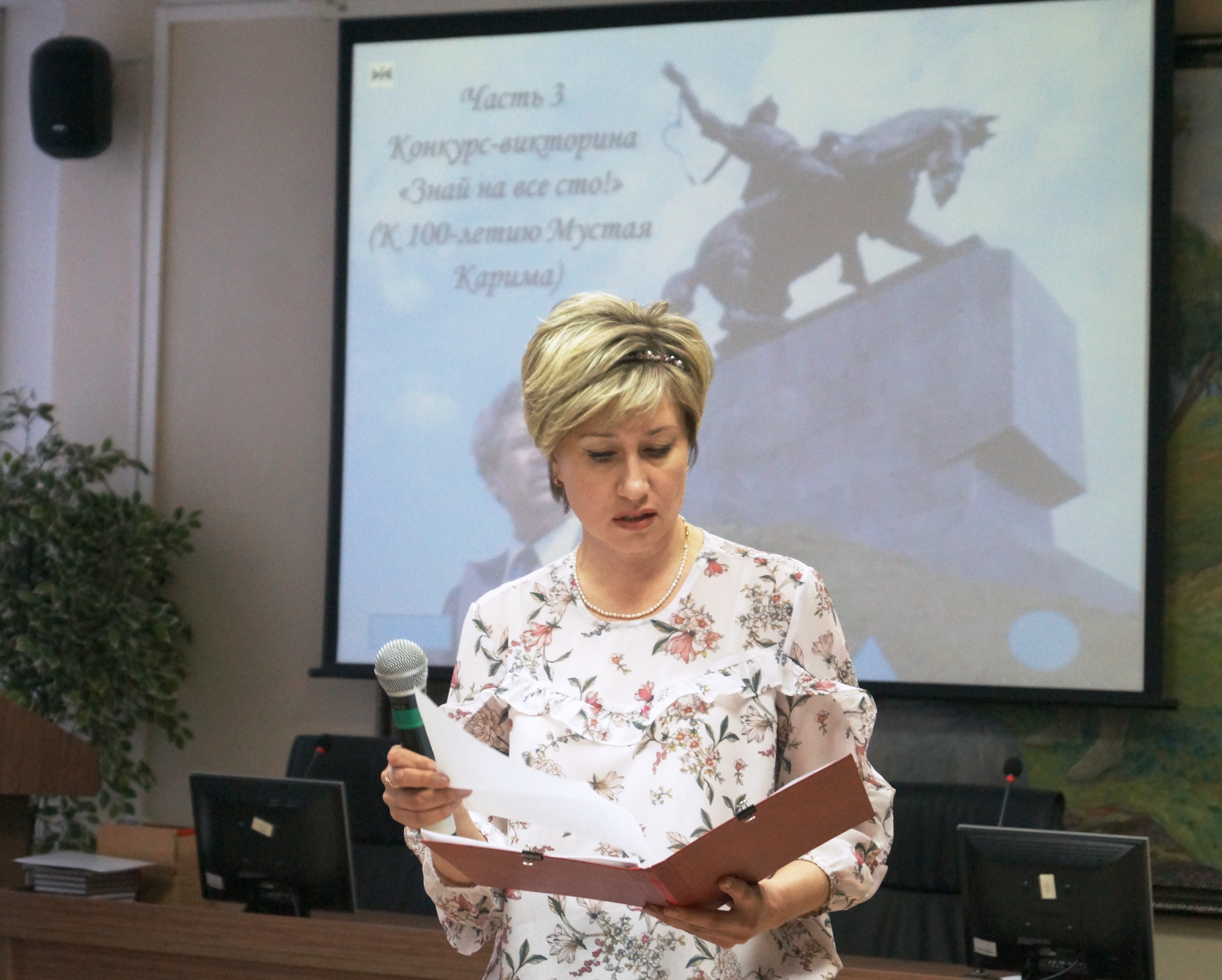 Команды ИФОМК и факультета психологии померялись силами в конкурсе-викторине «Знай на все сто!», посвященном 100-летию со дня рождения Мустая Карима. Особенно удались чтение стихов поэта на русском и башкирском языках и сценки из повести «Радость нашего дома» и пьесы «В ночь лунного затмения». Жюри наградило команды сборниками стихов Мустая Карима, а победившую команду ИФОМК еще и сертификатами на бесплатную распечатку текстов в нашей библиотеке.