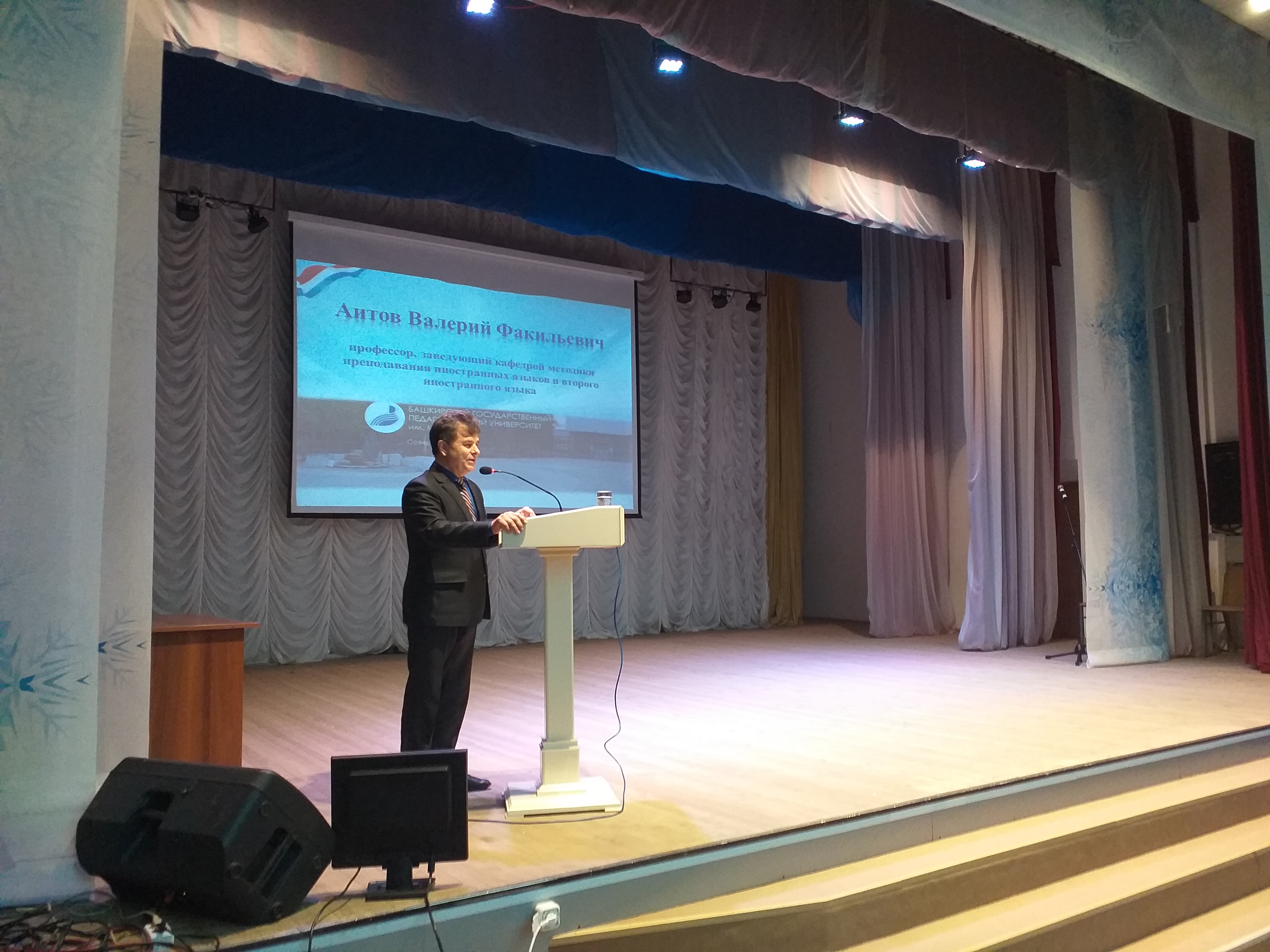 Представители вузов познакомили будущих абитуриентов со своими учебными заведениями.  Представитель БГПУ им. М. Акмуллы д.п.н., профессор, заведующий кафедрой методики преподавания иностранного языка и второго иностранного языка В.Ф. Аитов дал подробную информацию о вузе и ознакомил старшеклассников с условиями приема.