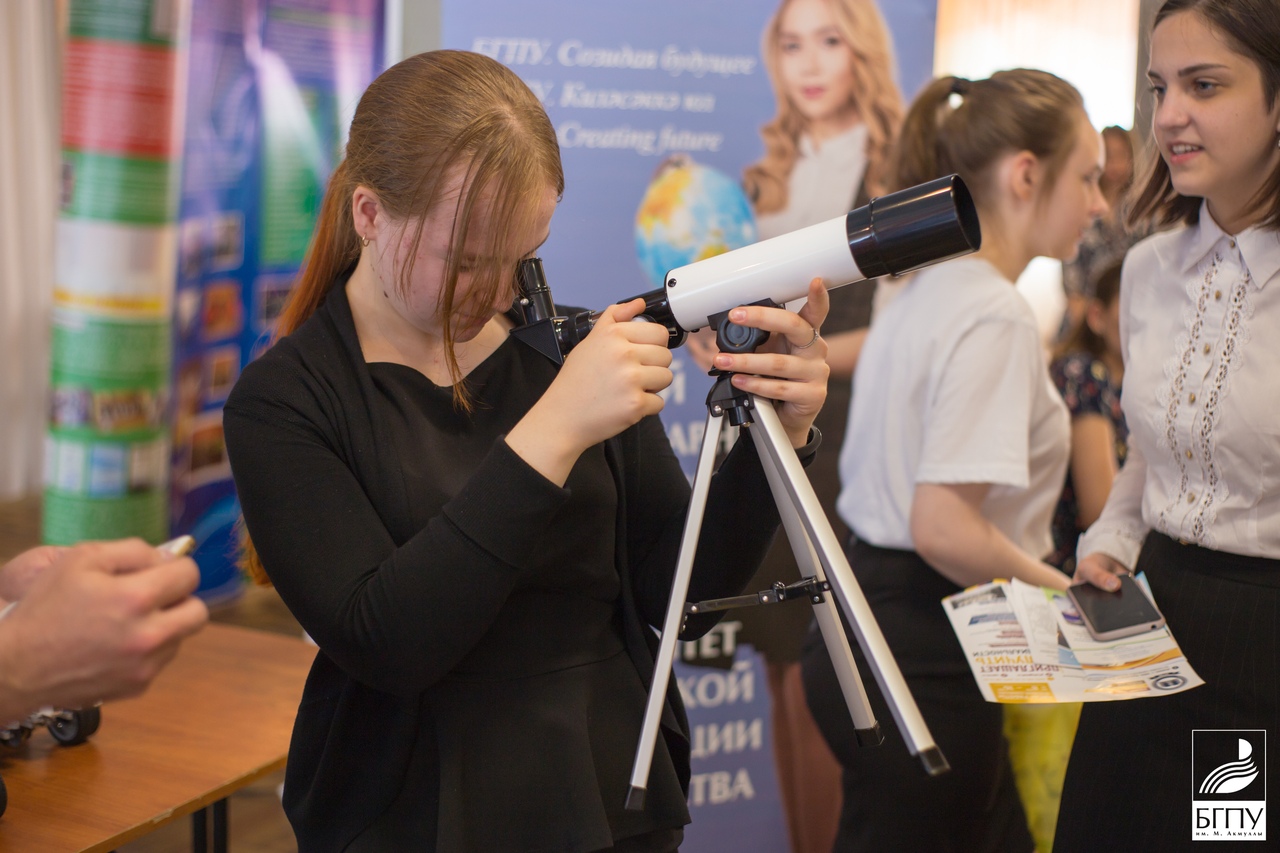 Представители учебных заведений презентовали себя в организованных блоках, где БГПУ им. М. Акмуллы представлял Мобильный центр инженерно-технического творчества. Данная лаборатория заинтересовала школьников возможностью конструирования электронных устройств, моделирования трехмерных фигур и деталей. Старший преподаватель кафедры прикладной физики и нанотехнологий Нагаев Фанур Амирович ознакомил учеников с историей развития робототехники, продемонстрировал  модели роботов.