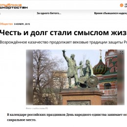 В газете «Республика Башкортостан» ко Дню народного единства вышла статья кандидата исторических наук Алексея Кортунова, посвящённая роли казачества в истории России.