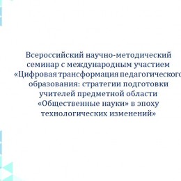 Приглашаем принять участие в работе Всероссийского научно-методического семинара «Цифровая трансформация педагогического образования: стратегии подготовки учителей предметной области «Общественные науки» в эпоху технологических изменений»